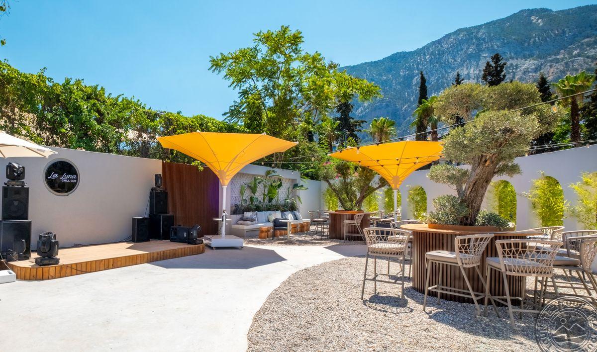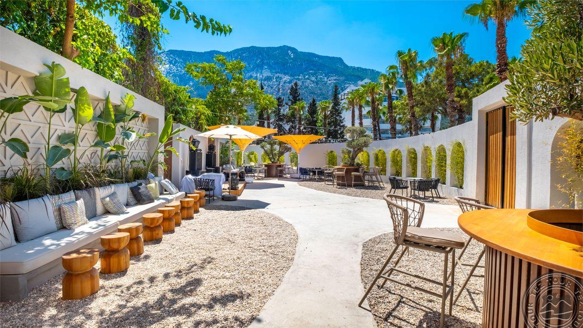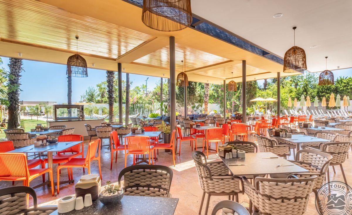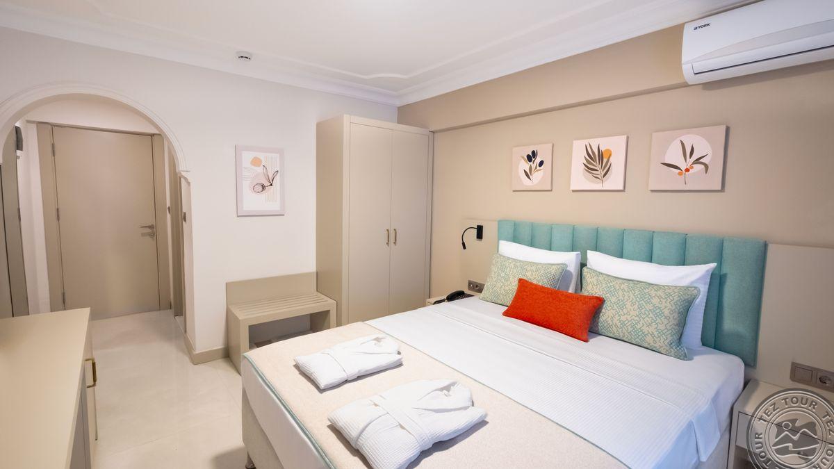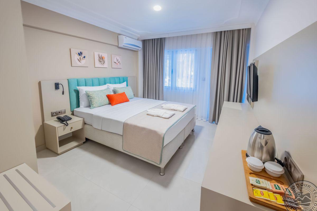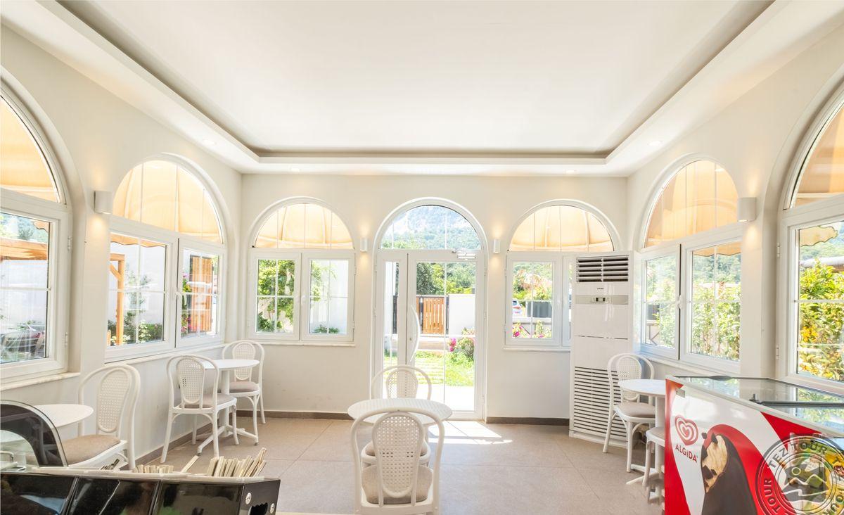 в 40 км от аэропорта г. Анталья, в 15 км от г. Кемер, в поселке Бельдиби, на самом берегу моря.