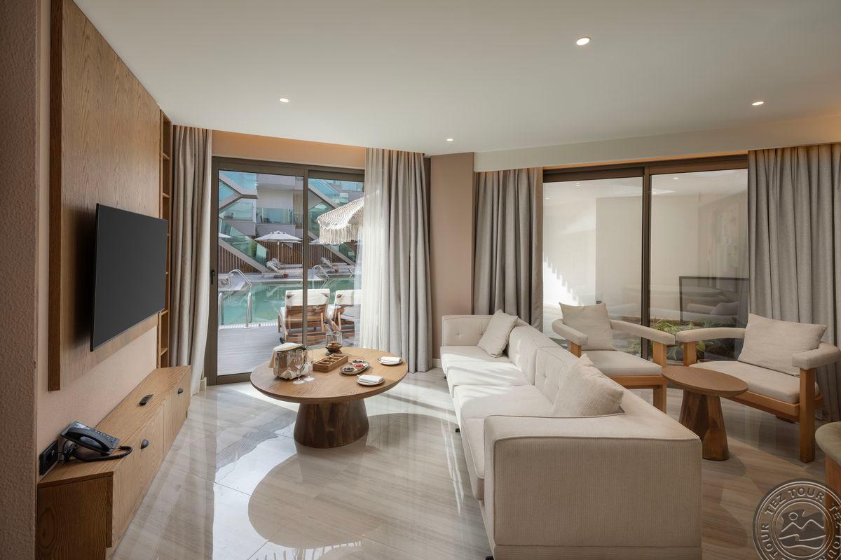 7 Signa Junior Suite (вид на море, гостиная, спальня с дверью, двуспальная кровать, 2 ванные комнаты, балкон с бассейном, макс. 3 чел. + инф. или 2+2 чел., 65 м2);