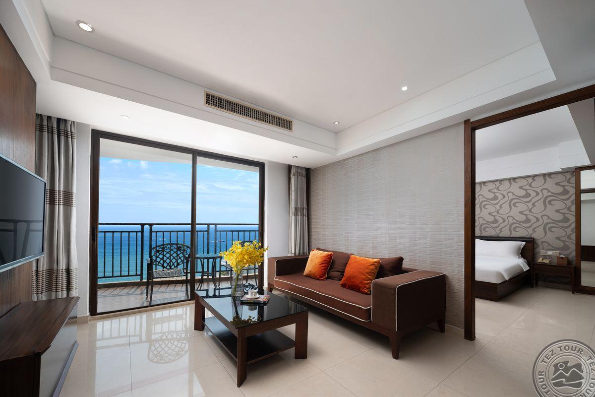 Ocean View Suite (33-36 этаж, вид на море, гостиная и спальня, кровать King 1,8 м, без балкона, макс. 3+1 чел., 80-110 м2).