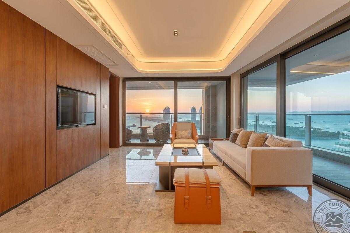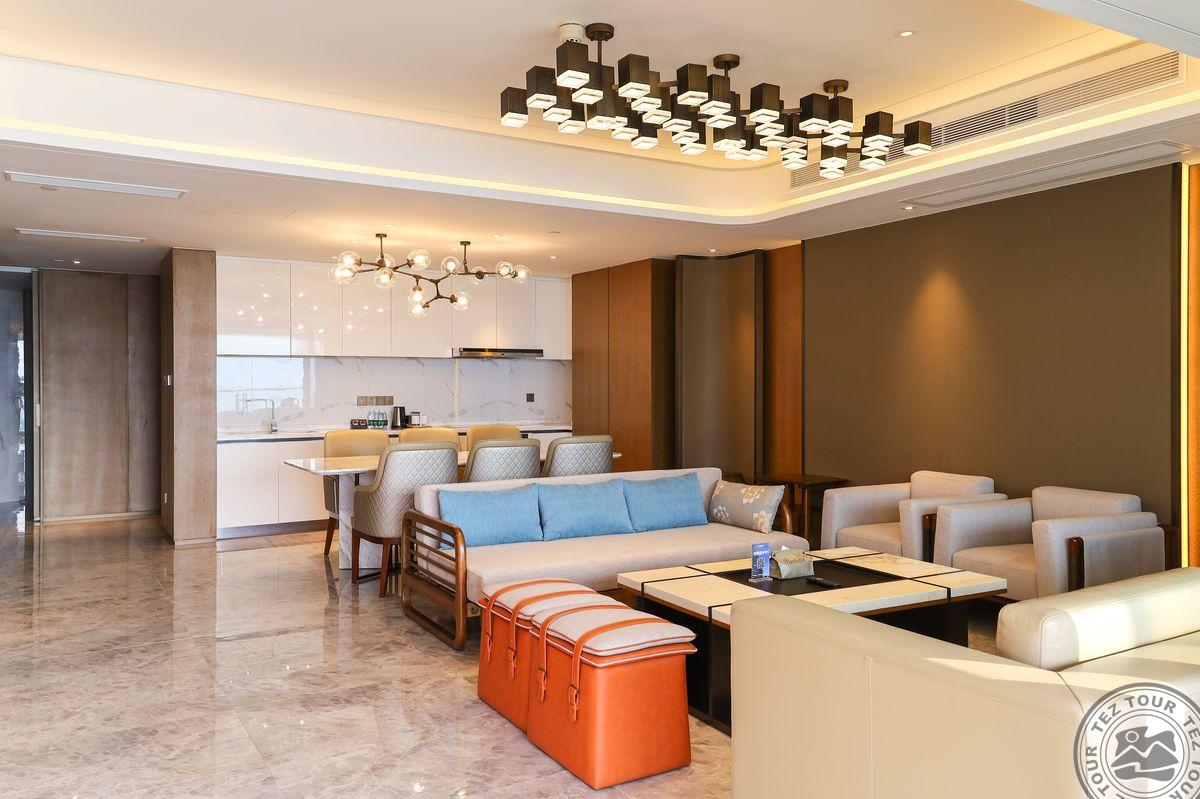 Deluxe Suite Ocean View (3-8 этаж, вид на море, гостиная и 2 спальни, кровать 1.8*2 м и кровать 1.5*2 м, макс. 5+1 чел., 80 м2);