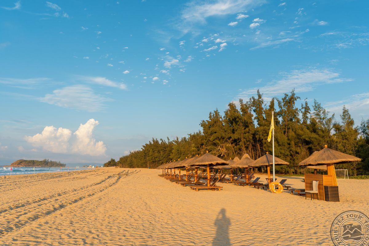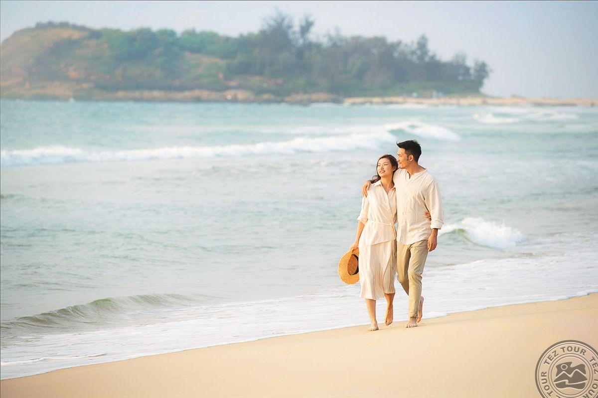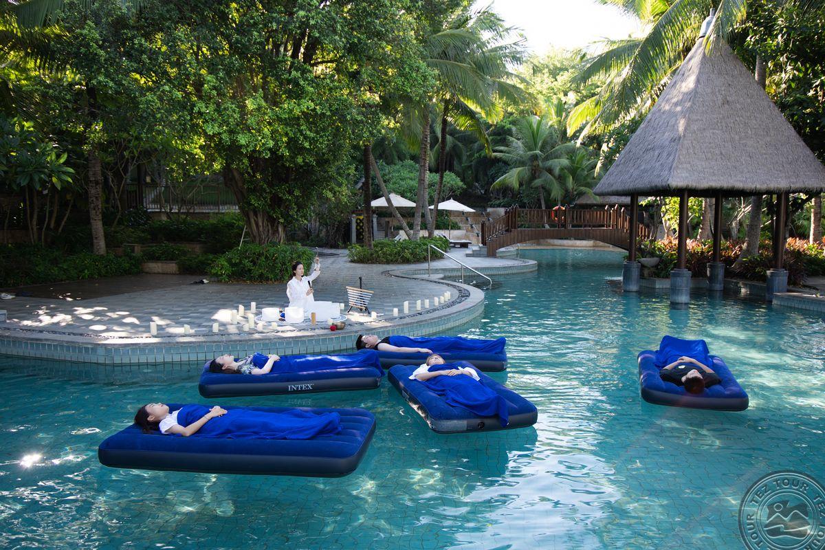 в бухте Циншуйвань, в 50 км от аэропорта, в 30 км от города Санья, в 200 м от моря. Бухта Циншуйвань – это 12-километровый пляж с живописным морем и белоснежным “певучим” песком.