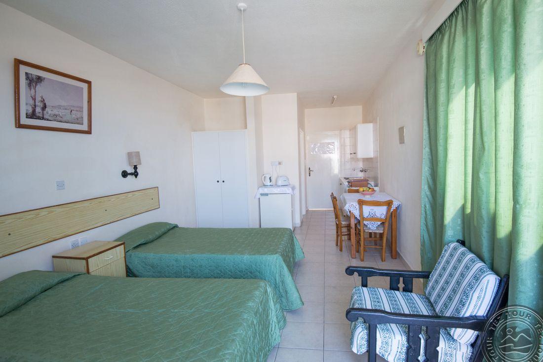 Построен в 1993 году, последняя реновация была в 2017 году. Состоит из одного двухэтажного здания, находится через дорогу от Flora Maria Hotel Apts, питание предоставляется в ресторане соседнего отеля Cleopatra Hotel (400 м).