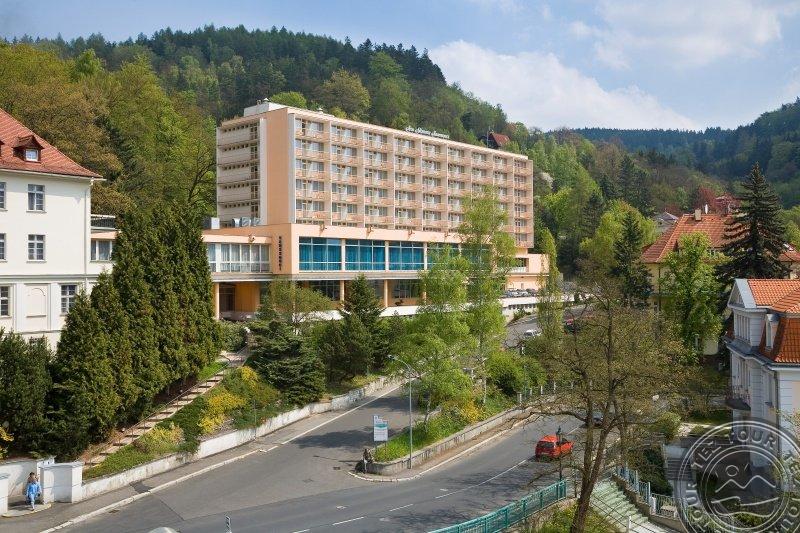 в тихой местности курортного города Карловы Вары, всего в 2 км от его центра. Расстояние от аэропорта Václav Havel Airport - 119 км.