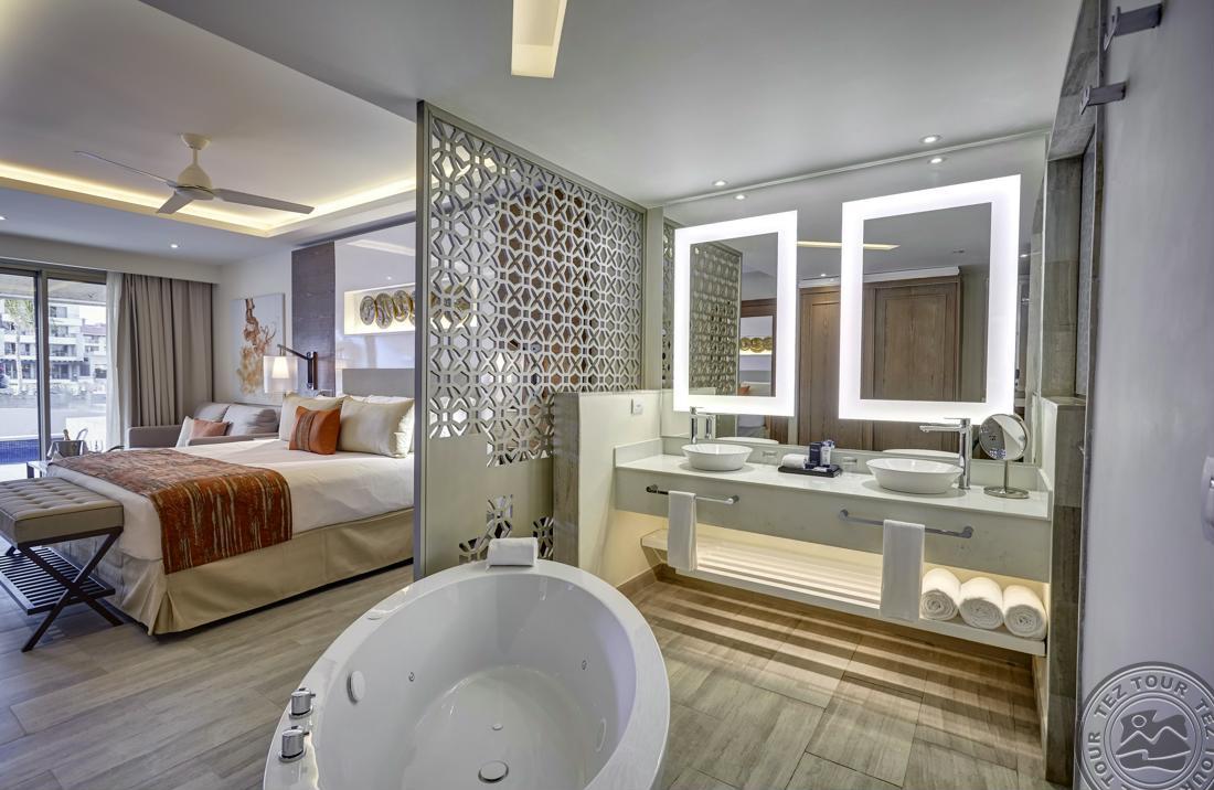 Luxury Junior Suite Swim Out DC (56 м2, мин. 1+0/макс. 3+1/4+0 чел.) номера с 1 кроватью размера king-size или 2 кроватями queen-size и привилегии Diamond Club (ознакомиться можно в разделе дополнительной информации), с выходом к бассейну.