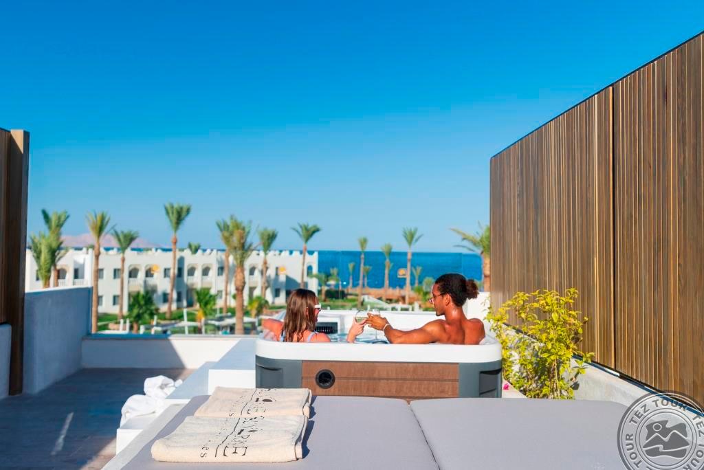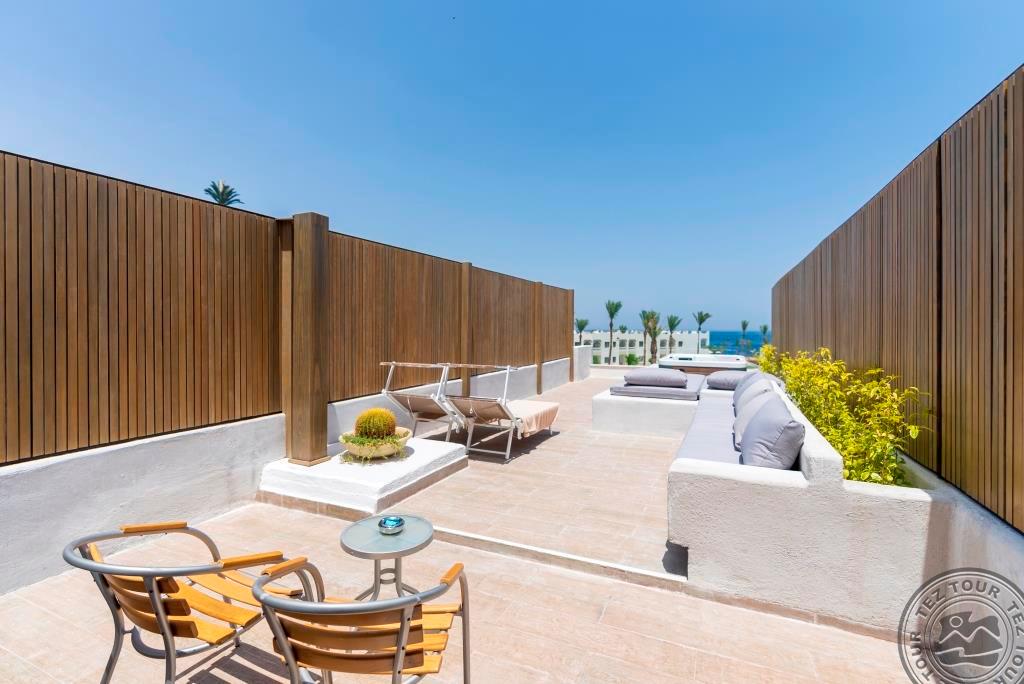 Jacuzzi Suite SV/PSV  (Sea/Partial Sea view, 80м2, макс. 2+2 или 3+1чел., спальня с King size bed, зона отдыха, включая ванную комнату с душем, джакузи и террасу),