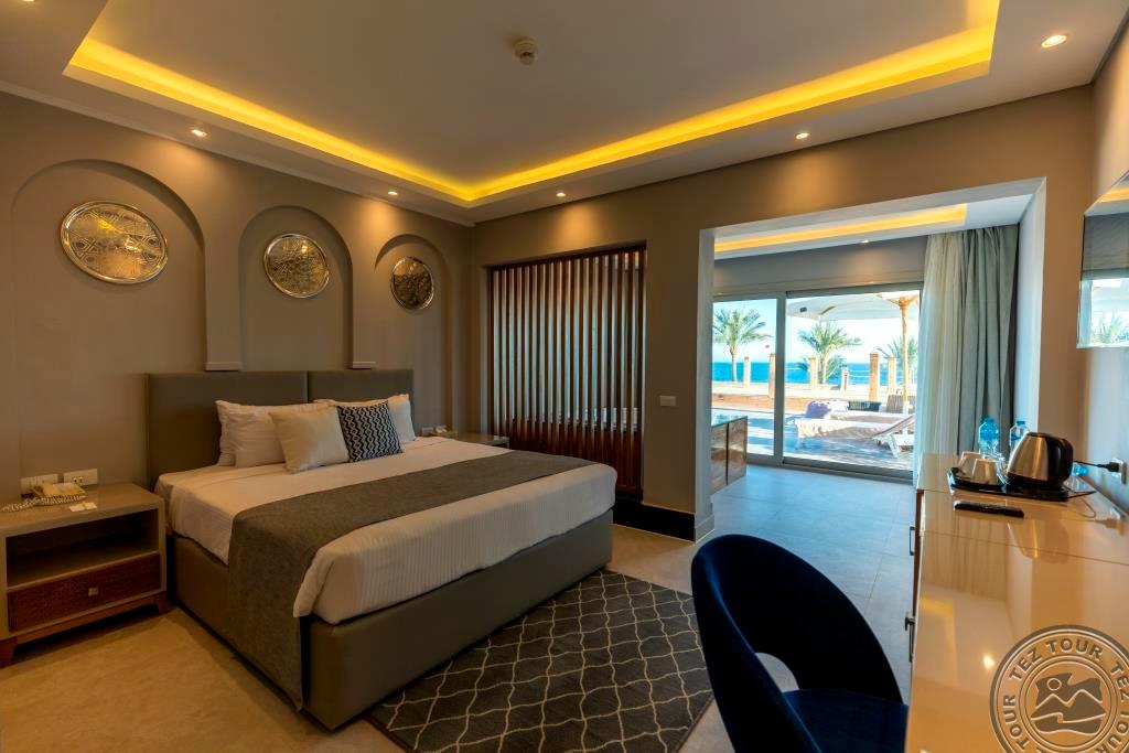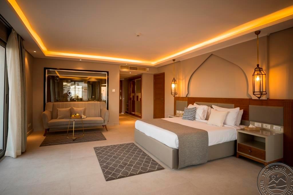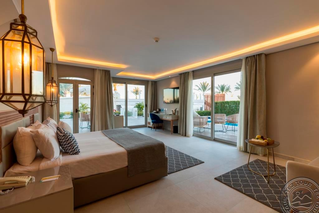 Junior Swim Up Suite SV (Sea view, 65м2, макс. 2+2 или 3+1чел., cпальня с King size bed, зона отдыха, включая ванную комнату с душем и ванной и террасу с выходом к общему бассейну),