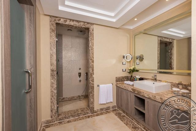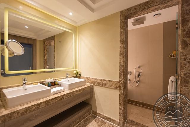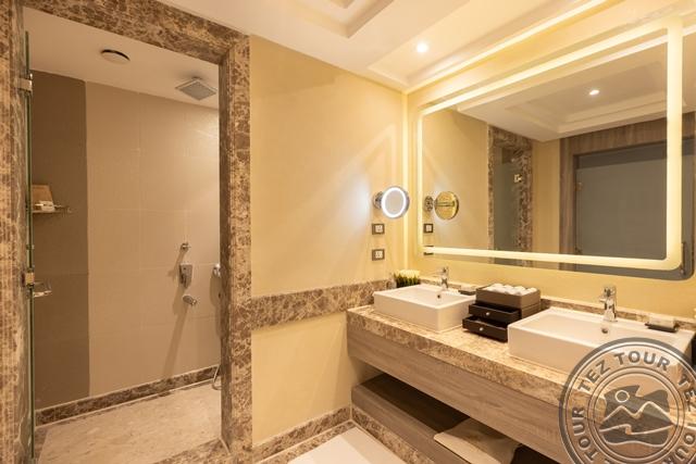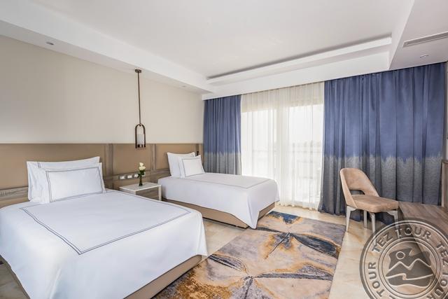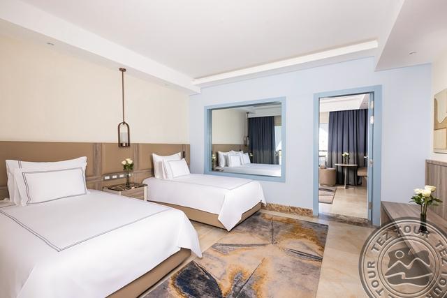 Two Bedroom Deluxe Suite Blue Planet (garden view, 4+2, макс. 4 взр., 2 спальни, гостиная с диваном, 3 ванные комнаты, балкон, 100-150 м2). Расположены только на верхних этажах.