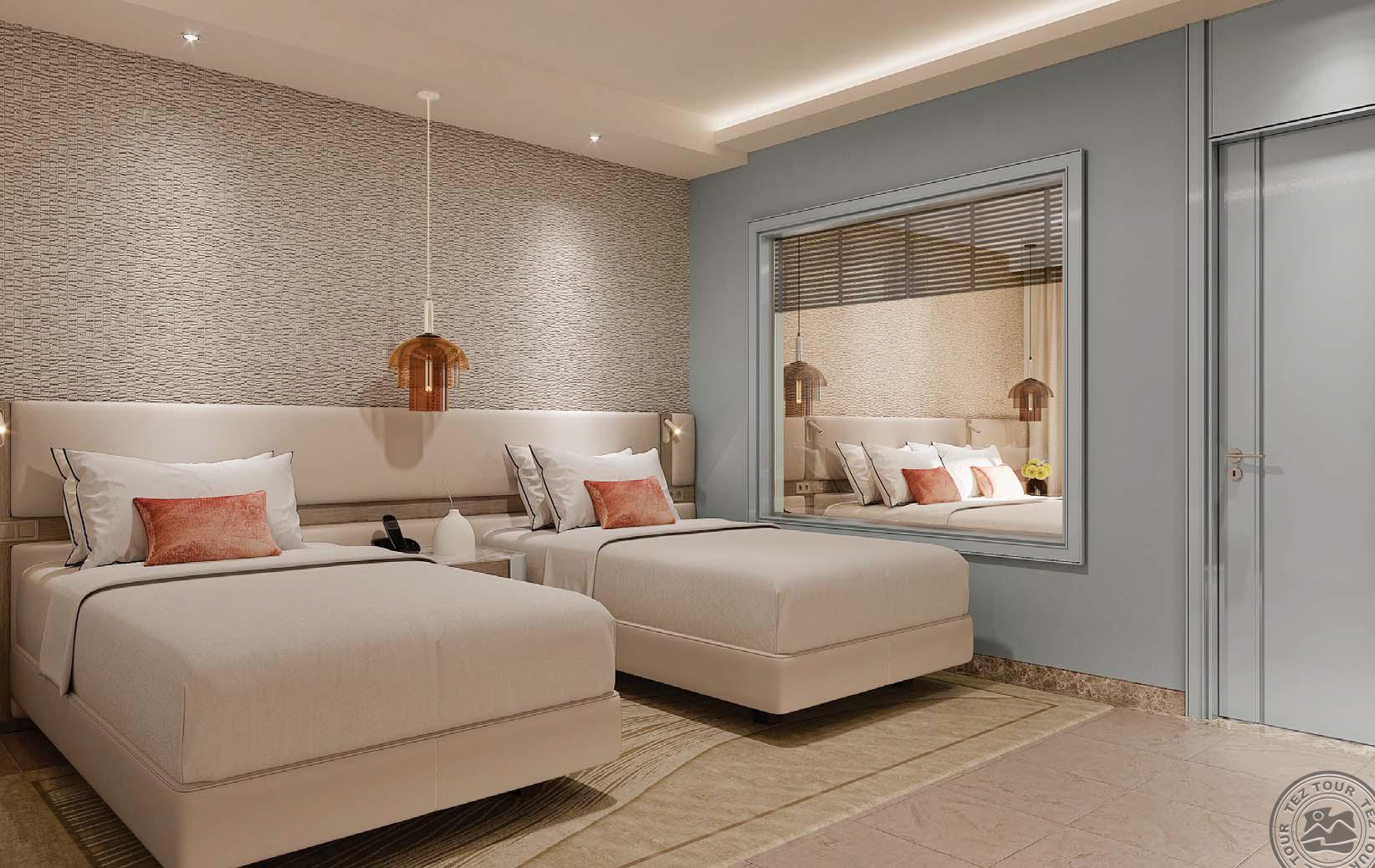 Family Room Blue Planet (garden / pool view, 3+2, 4+1 чел, 2 спальни с дверью между ними, душ, балкон или терраса, 50-53 м2). Комнаты - "паровозиком".
