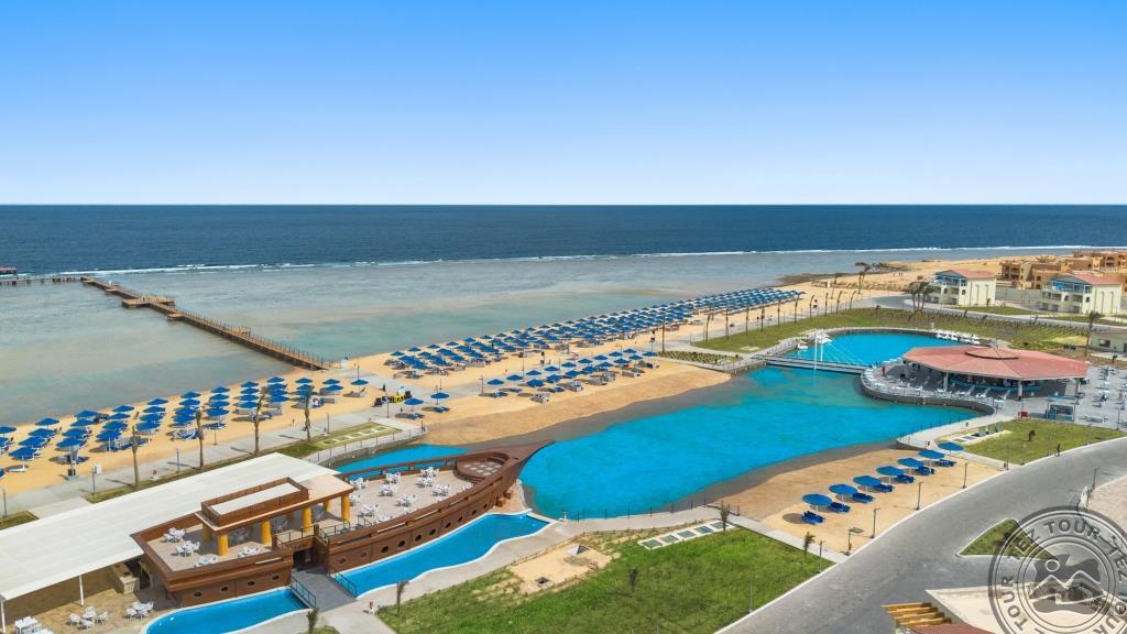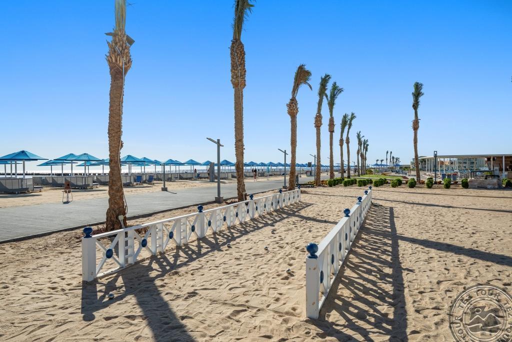 в 30 км от аэропорта, в 33 км от центра Хургады в районе Макади Бей, на самом берегу моря.