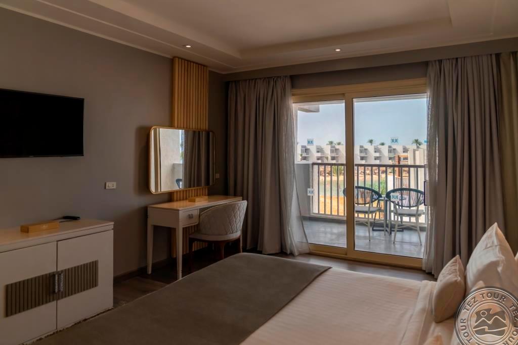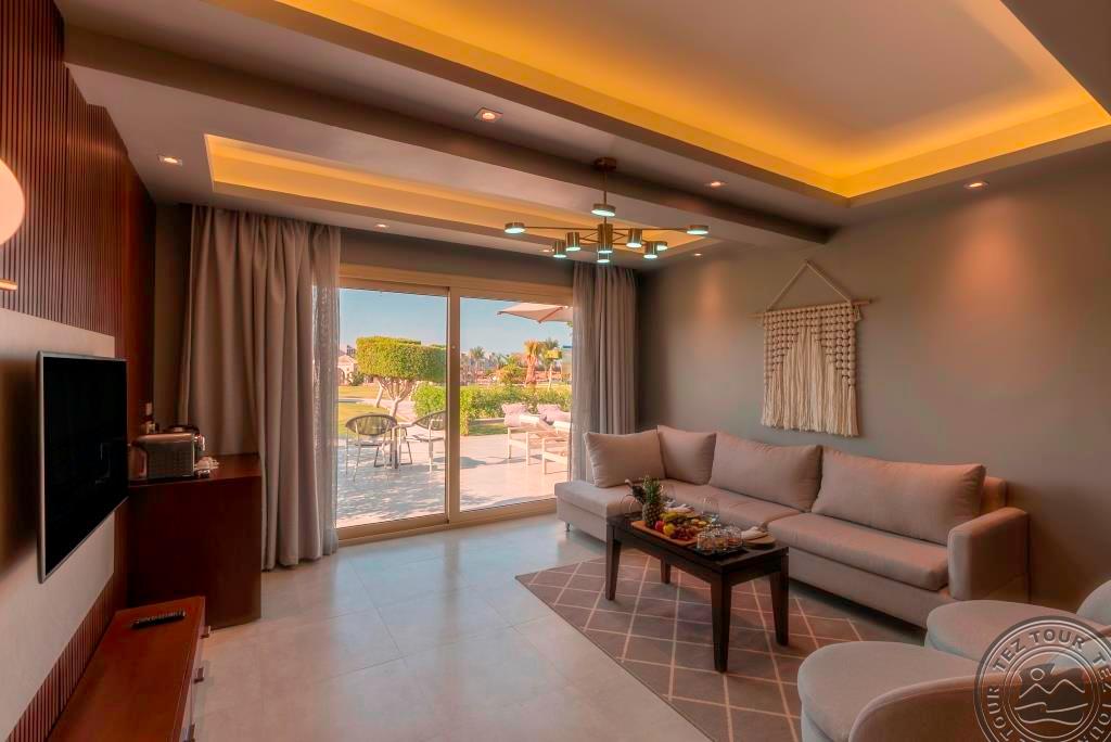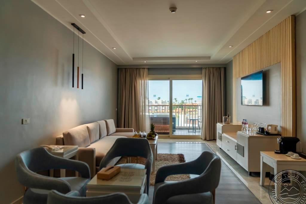 Junior Swim up suite-posh club (Sea view, 44 м2, спальня с King size bed, гостиная с диваном, включая ванную комнату и террасу с выходом к общему бассейну),