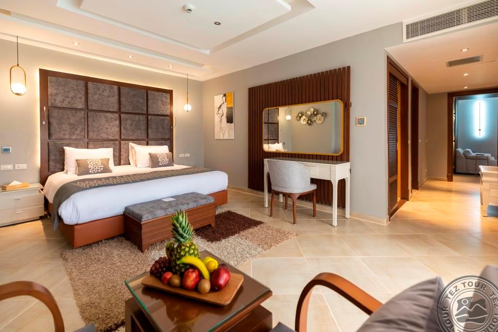 Royal Suite-posh club (Sea view, 123 м2, 2 спальни: одна с King size bed, вторая - с Twin beds, гостиная, две гардеробные, включая 2 ванные комнаты с ванной/душем и террасу с выходом к частному бассейну).