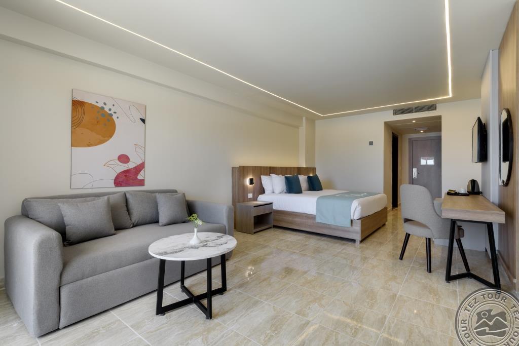 Family Jacuzzi Suite Pool or Side Sea View (Вид на бассейн / боковой вид на море, 82 м2, 2 спальни: одна c King-size bed, вторая с Twin beds, включая ванную комнату и террасу),