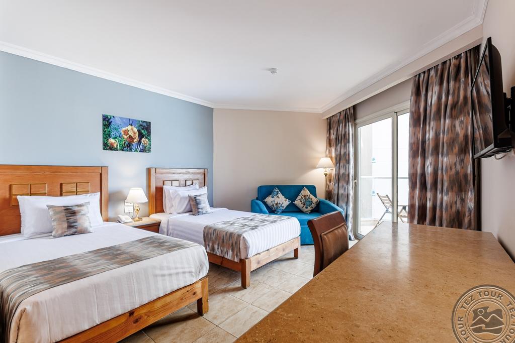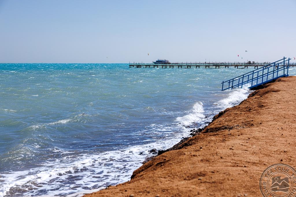 В 25 км от аэропорта Хургады, в 16 км от центра города, на самом берегу моря.