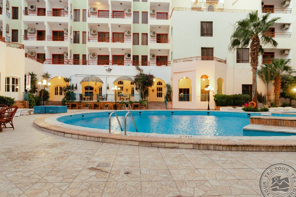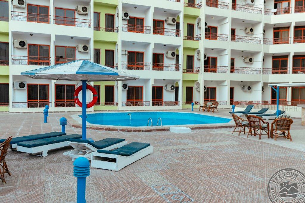 В 12 км от аэропорта Хургады, в 3 км от Старого города, на второй линии.