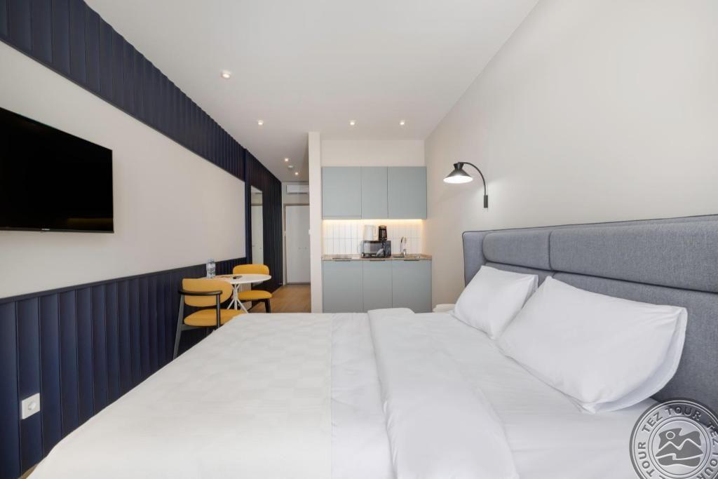 Next White-представляет современные студии со стильным интерьером и полностью оборудованными кухнями. Окна от пола да потолка открывают потрясающий вид на море, создавая идеальное сочетание отдыха и вдохновения. Находится всего в двух шагах от крупнейшего торгового центра города, пляжа и достопримечательностей. Современный апарт-отель предназначенный как для деловых путешественников, так и для семей и индивидуальных туристов.