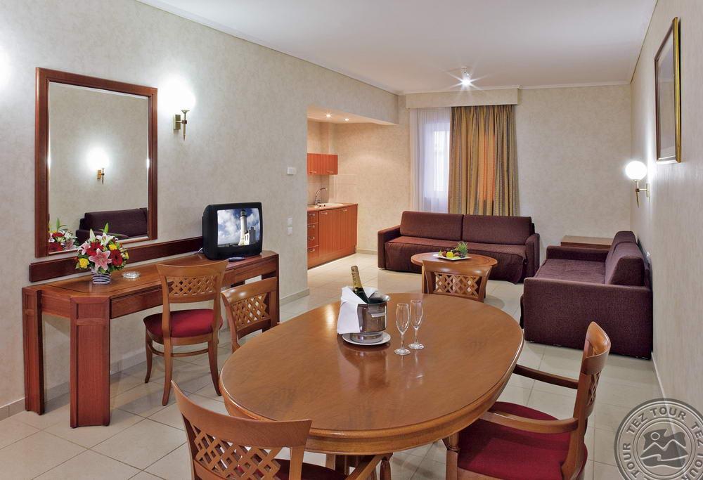 • junior suite (однокомнатный номер, спальня с гостиной зоной, основная кровать – двуспальная или 2 односпальные, доп. – софа, макс. 3+1 чел., 25 м2);