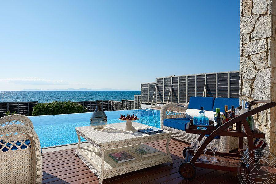 Olympia suite (расположен на побережье, спальня, гостиная с обеденной зоной и кабинетом, осн. кровать – 2 односпальные, доп. – раскладной диван-кровать, ванная комната с джакузи, отдельный туалет, терраса с выходом к индивидуальному бассейну, макс. 5 чел., 75 м2),