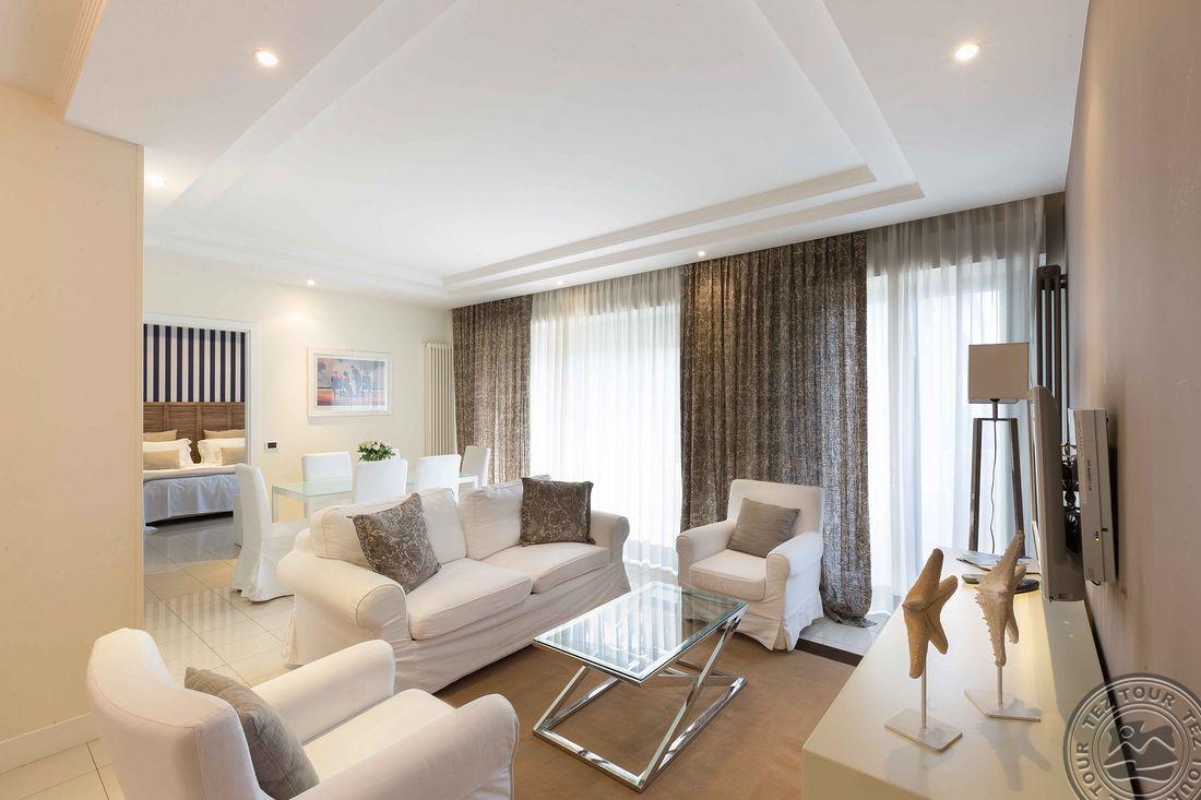 Suite Attico: 35 м2, на 2-4 чел. Спальня и гостиная с двуспальным диваном; терраса 17 м2 с видом на море на верхнем этаже отеля; реновирован в 2014 году.