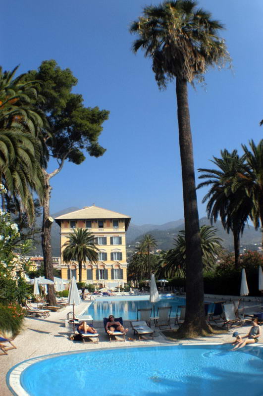 Здание отеля, выполненное в стиле неоренессанса, было построено в 1913 году. Сейчас это современный отель, сохранивший атмосферу Лигурийской Ривьеры начала ХХ века. Расположен напротив пляжа c мелким песком и прогулочной набережной, недалеко от исторического центра города. Вокруг отеля - красивый парк с величественными пальмами, а за парком - ботанический сад, откуда на территорию отеля часто заходят в гости почти ручные павлины.