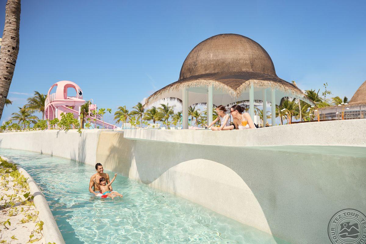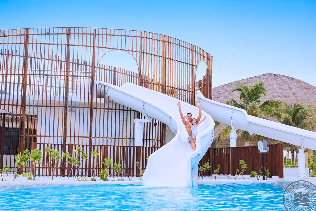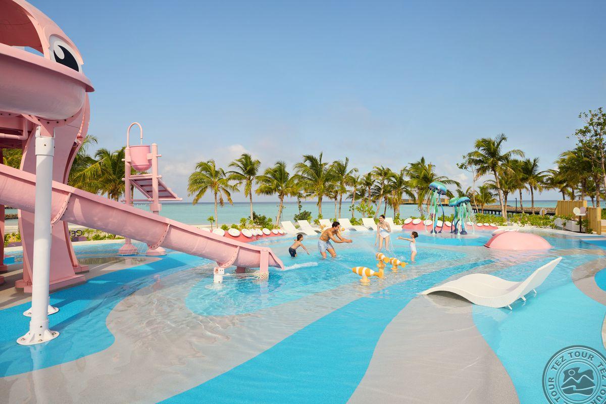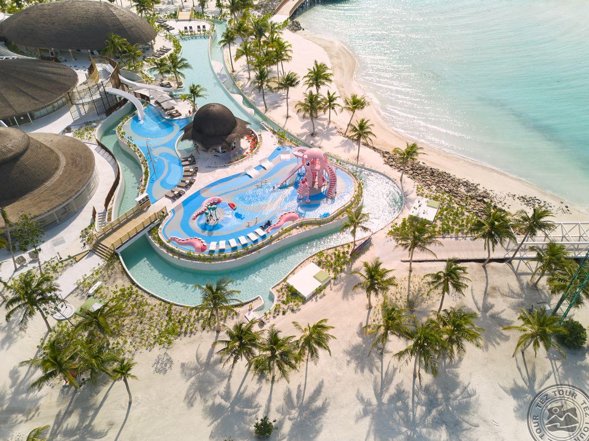 Размеры острова: 510 х 135 мИнтересный и динамичный отель Centara Mirage Lagoon Maldives, принадлежащий всемирно известной сети Centara Hotels & Resorts, ориентирован на семейный отдых. И детям, и их родителям придется по душе комплекс бассейнов с «ленивой рекой» и водной игровой площадкой. Отель поделен на различные зоны – например, «Nature Zone», помеченная иконками бабочки и орхидеи – тут расположен сад орхидей и спа-центр, или же «Active Zone» с изображением ската (Madame Stingray) и осьминога (Uncle Octopus), где расположены тренажерный зал, детский клуб, бассейн.