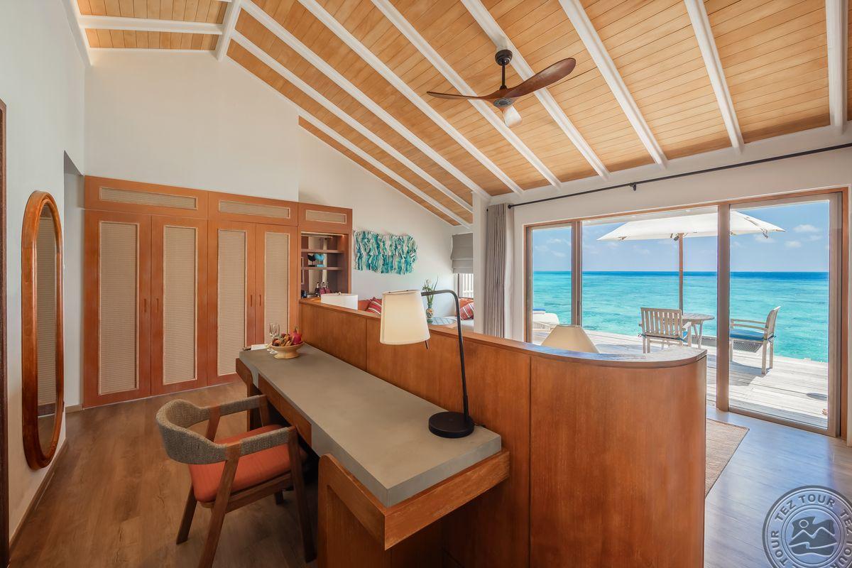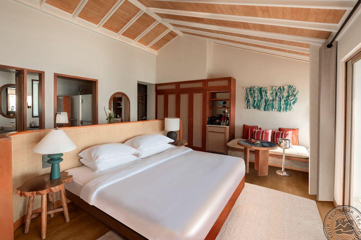 30 Overwater Villa (спальня с зоной гостиной, двуспальная кровать, спальня с зоной гостиной, терраса с гамаком над водой, спуск в воду с террасы, макс. 2+2 или 3 чел., 61 м2);