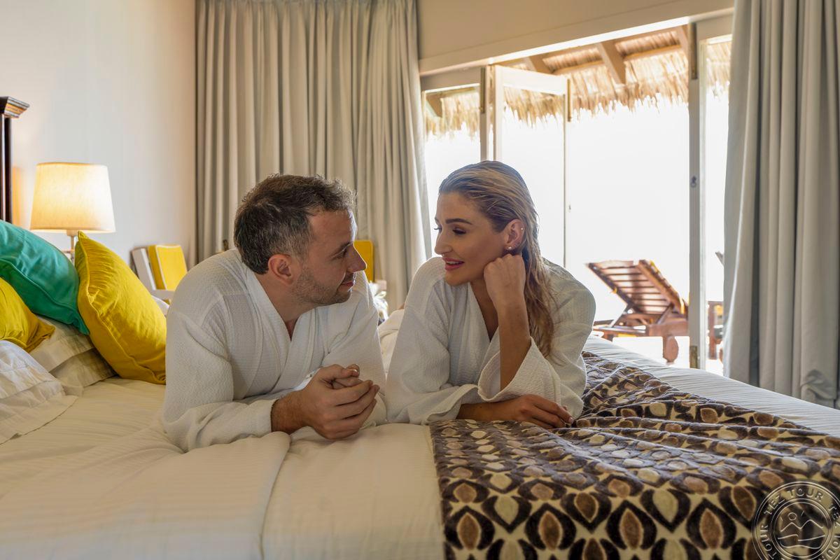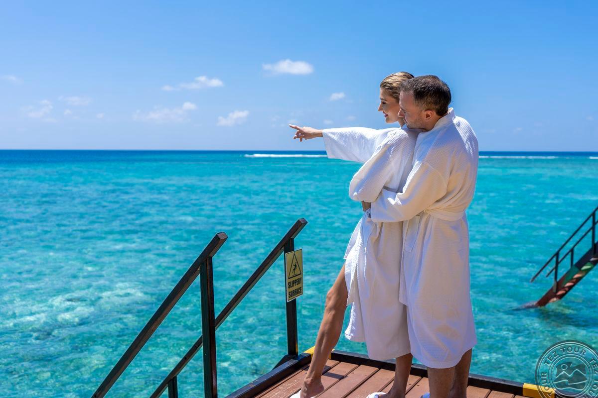 16 Sunset Water Villa (67 м², макс. 3 чел.). Водные виллы с видом на закат. Спальня с кроватью king-size, ванная комната с душем, терраса.