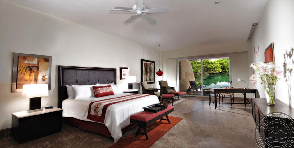 Всего 195 номеров с видом на море, террасой и зоной гостиной; некоторые номера с собственными бассейнами. Эти номера расположены около основного бассейна, рядом с мини-клубом и тренажерным залом. 117 м2, 1 king/2 queen bed в зоне спальни, зона гостиной с диваном, джакузи, гостевой туалет. Терраса с видом на море. Макс размещение 3 чел. или 2+2.
