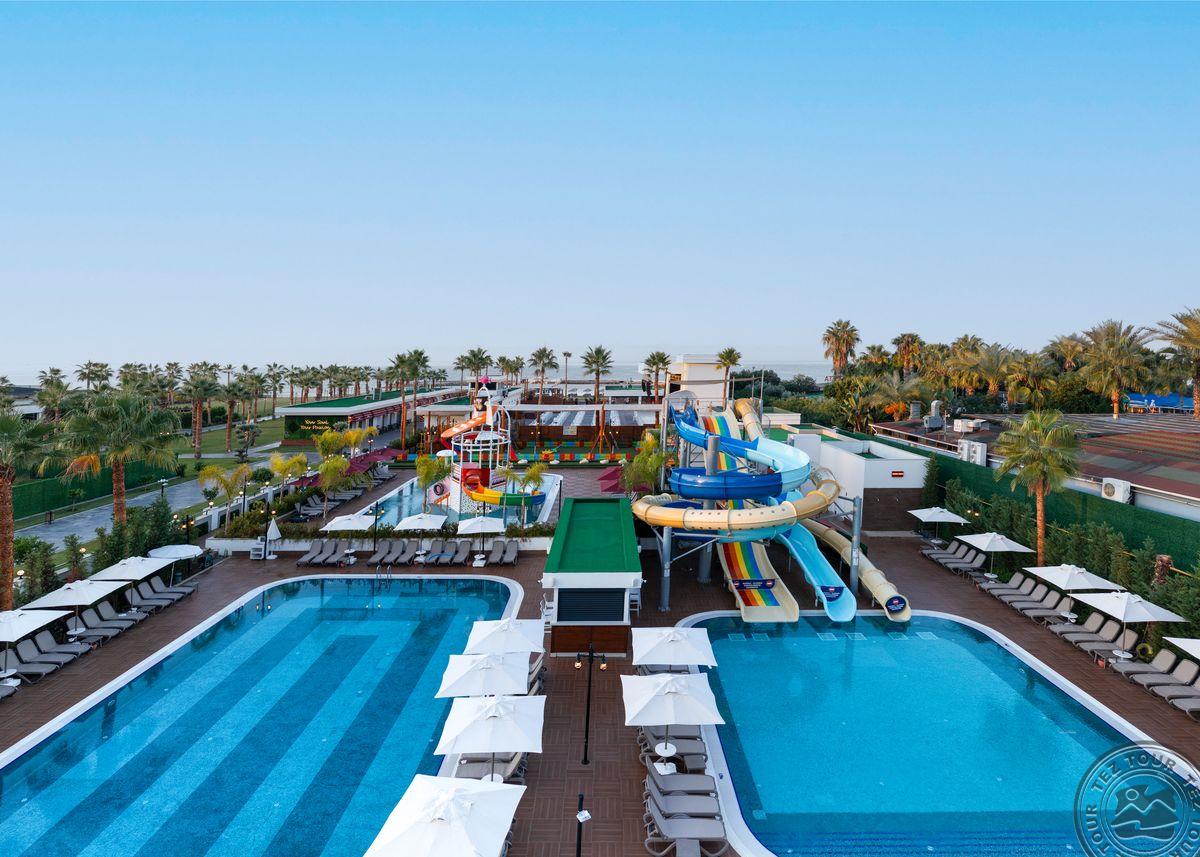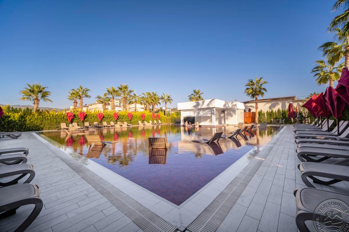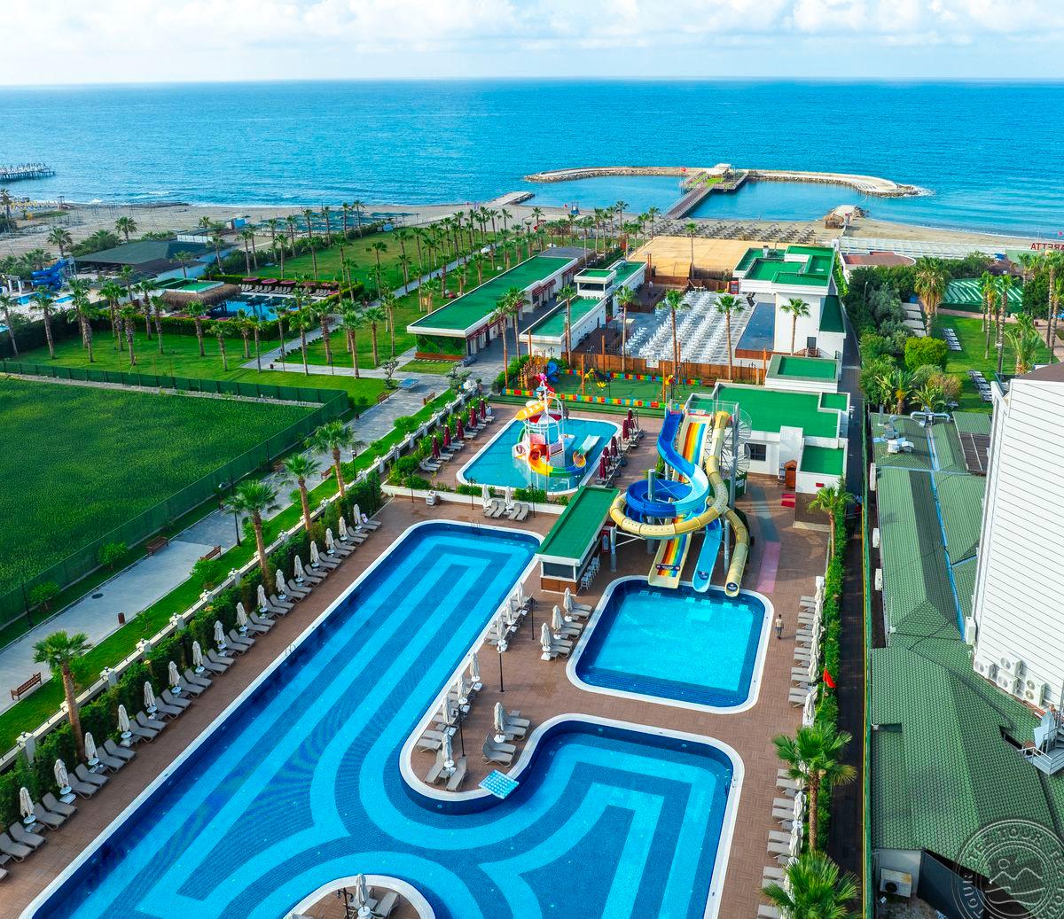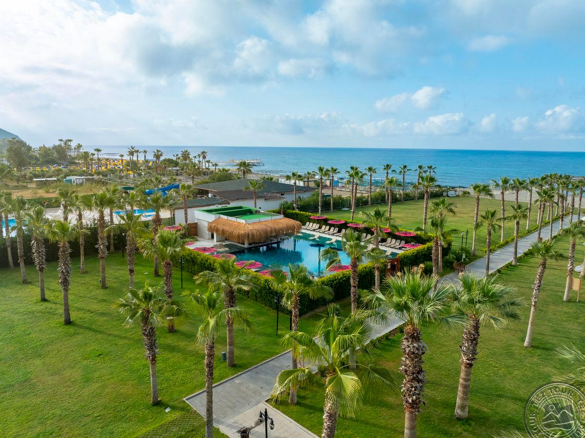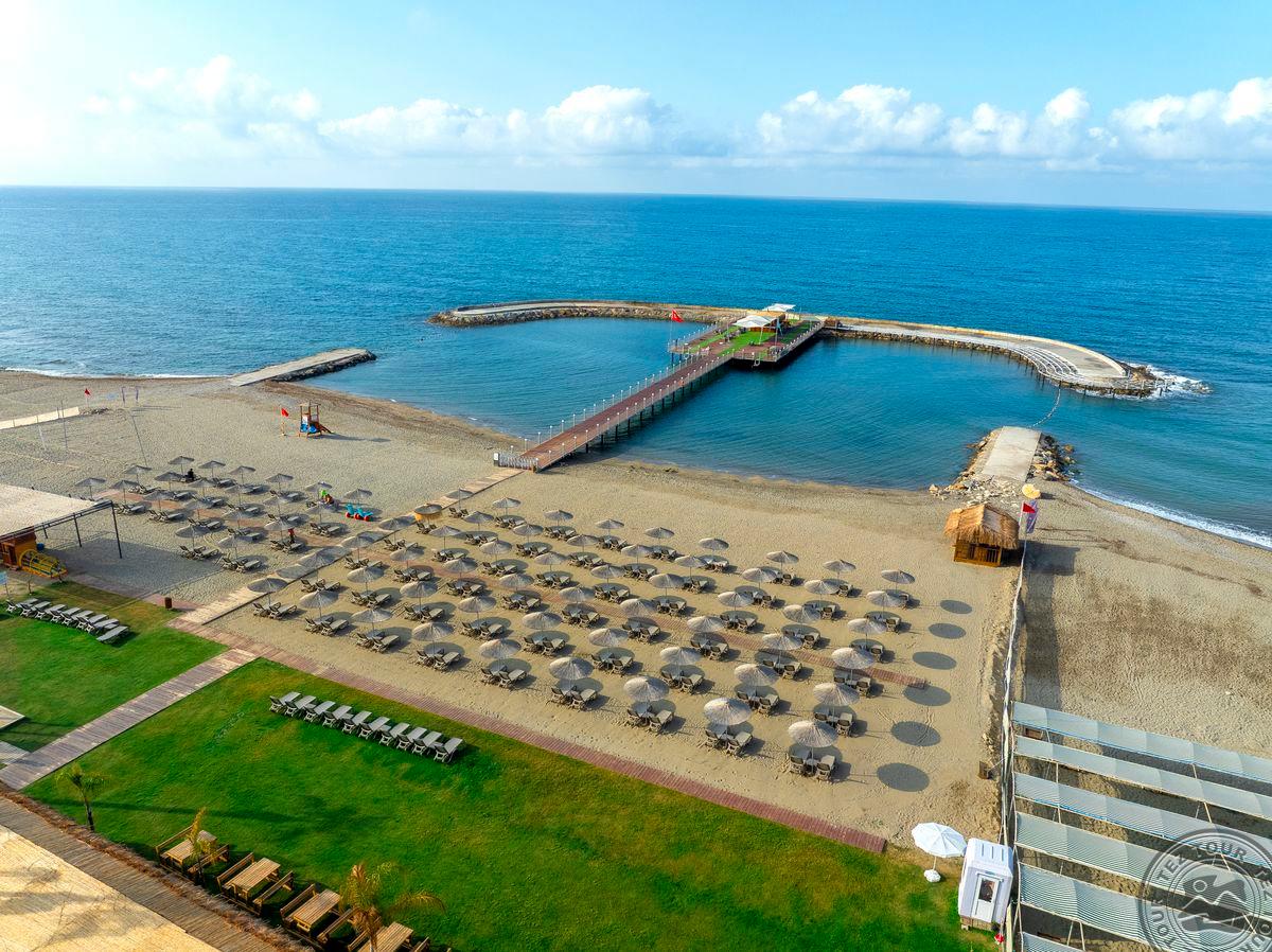 в 114 км от аэропорта г. Анталья, в 54 км от аэропорта Газипаша, в 104 км от г. Анталья, в 13 км от центра г. Аланья, в 2 км от центра поселка Конаклы, на берегу моря.