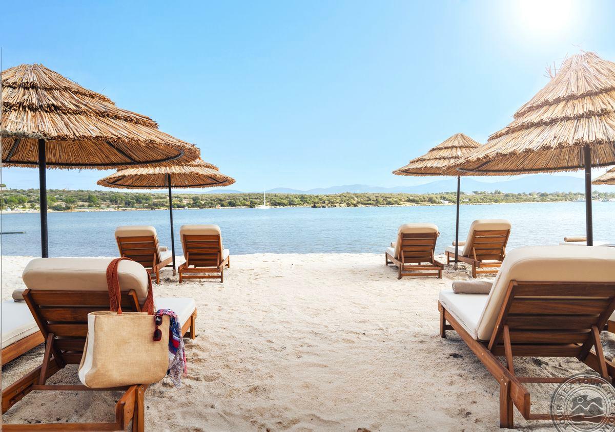• собственный песчано-галечный, каменистый пляж и песчаная лагуна