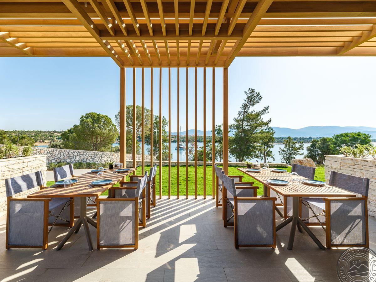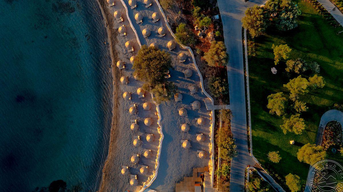 в 78 км от аэропорта г. Бодрум, в 139 км от аэропорта г. Измир, в 8 километрах от поселка Дидим, в 72 км от центра г. Кушадасы, в 110 км от центра г. Бодрум, на полуострове Делидже, на берегу моря.