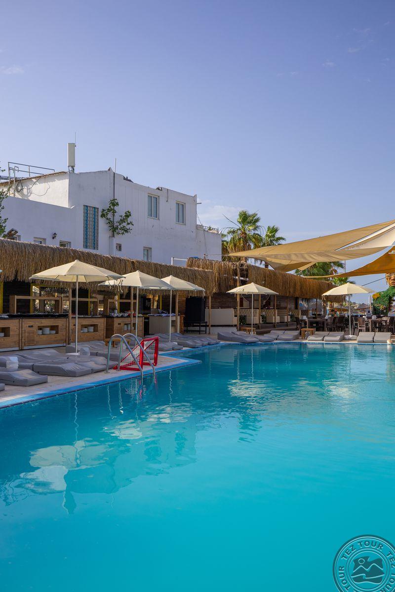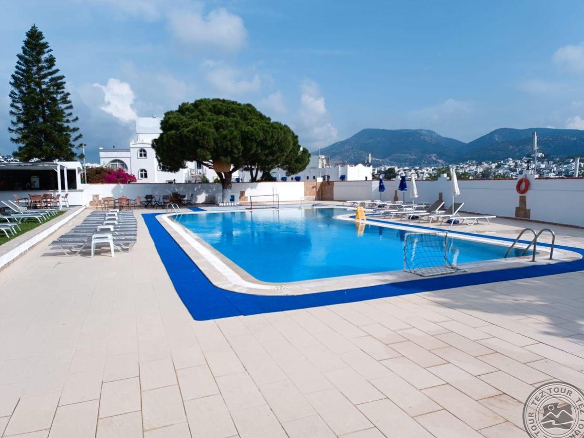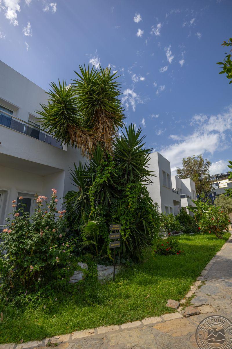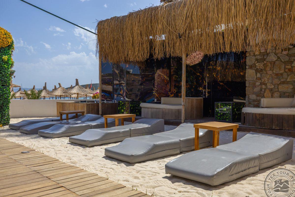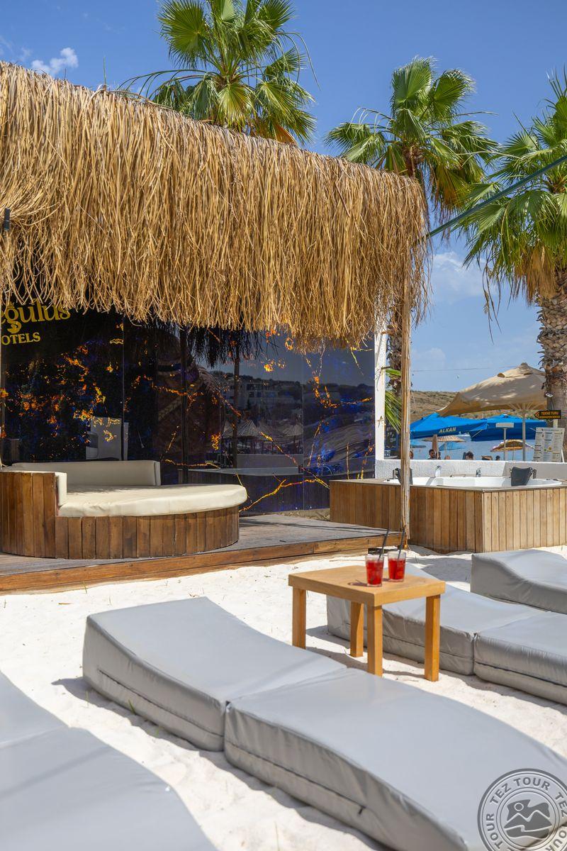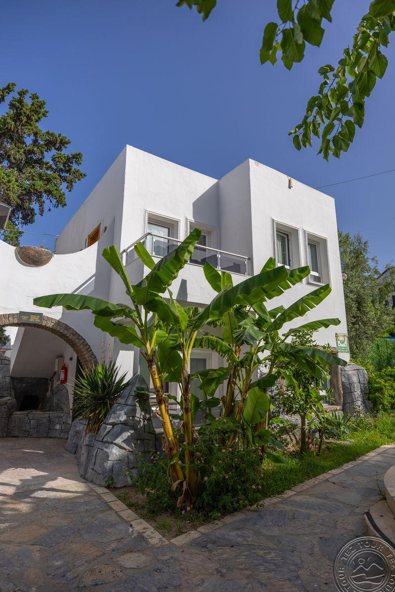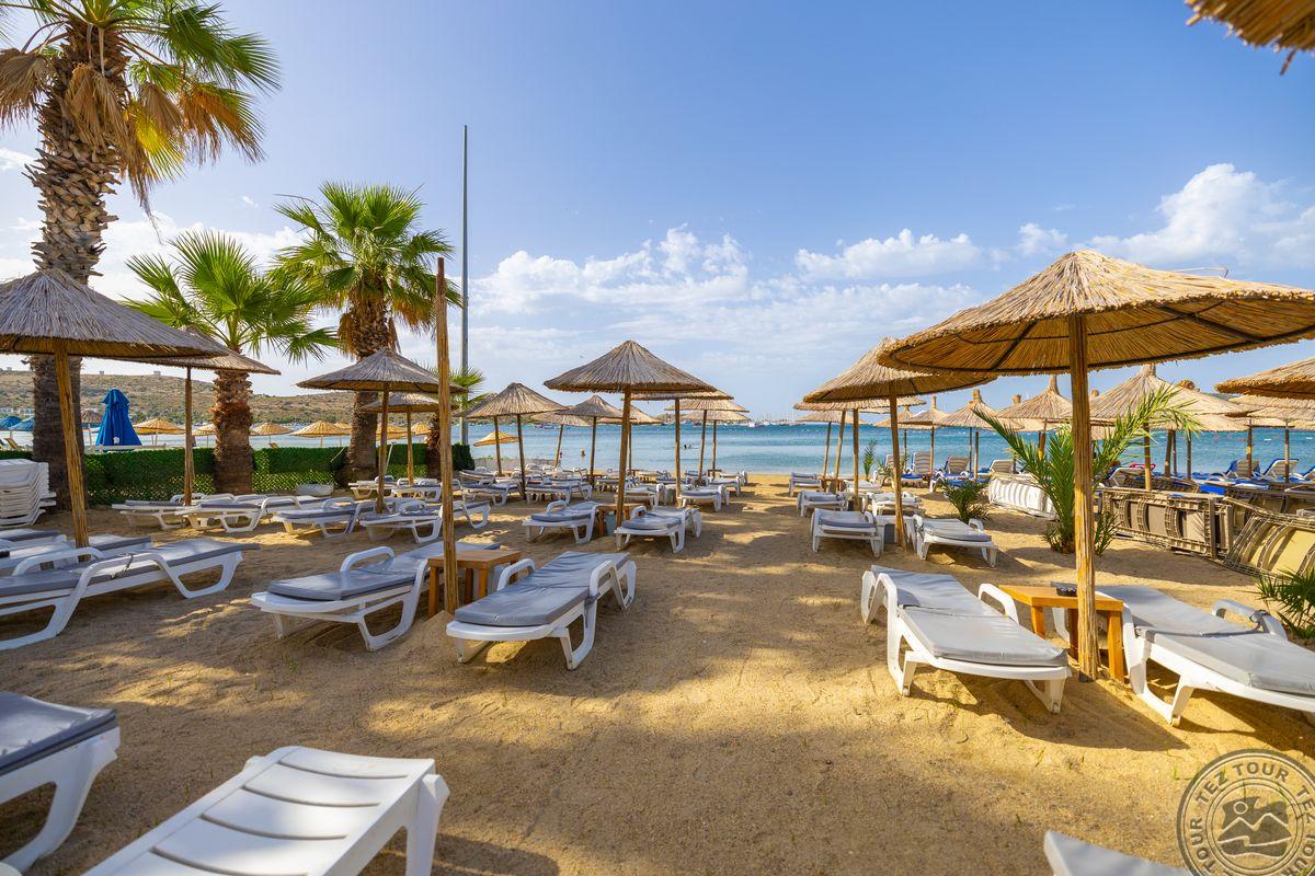 в 500 м от центра Гюмбет, в 4 км от центра Бодрума, в 45 км от аэропорта, на берегу моря.