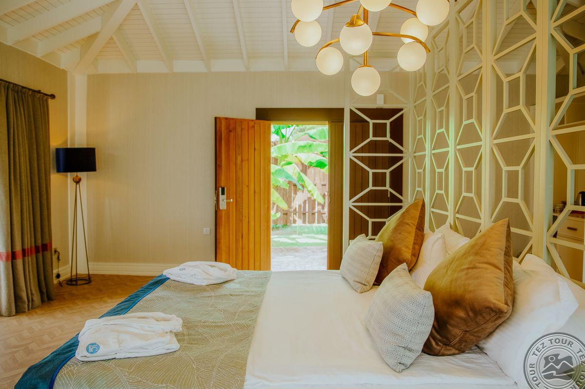 2 двухкомнатные виллы Beach Villa with Pool (просторная гостиная с джакузи, спальня, ванная комната с душем, общая площадь 350 м2, жилая площадь 65 м2, терраса, собственный бассейн (30 м2), сад огорожен забором, макс. 2+1, VIP-сервис);