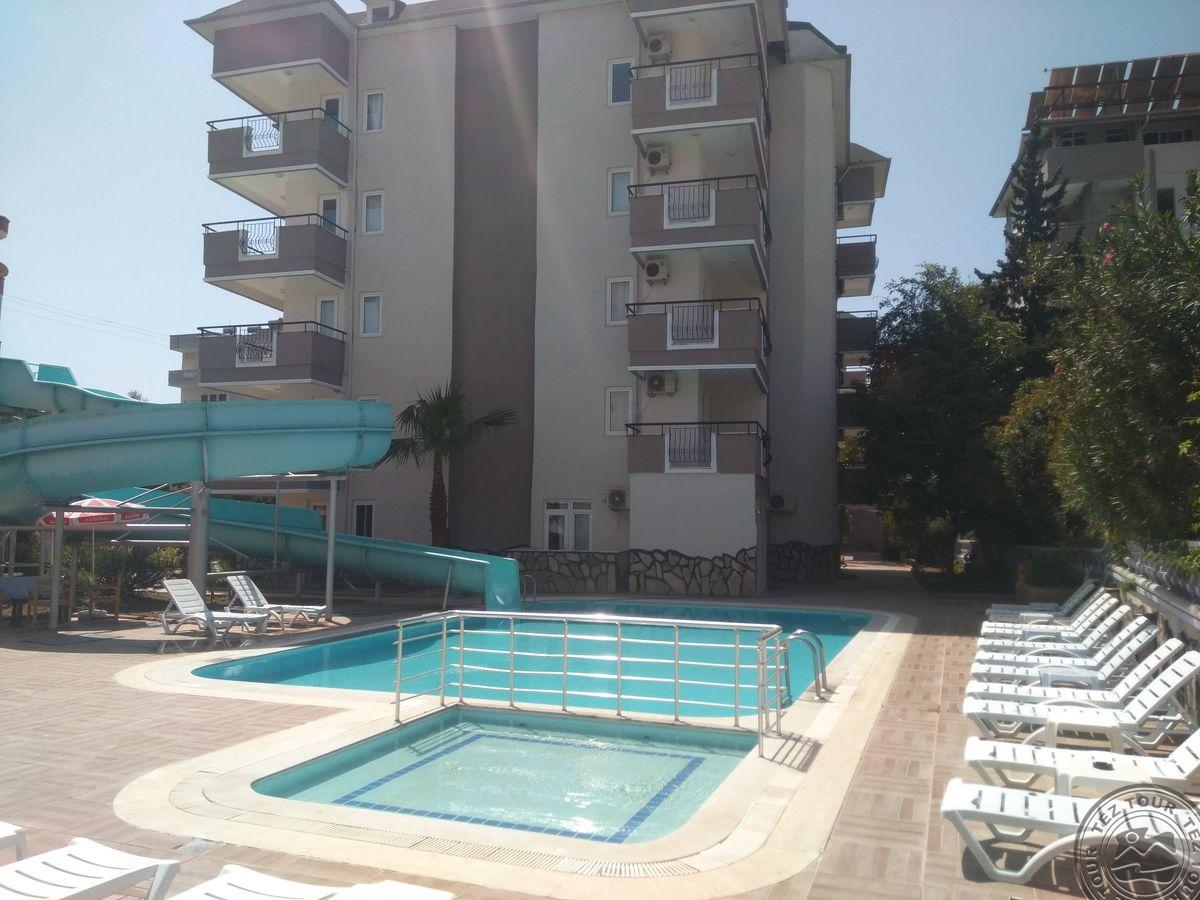 в 1 км от Конаклы, в 55 км от аэропорта Газипаша г. Аланья, в 110 км от аэропорта г. Анталья, в 121 км от г. Анталья, в 10 км от г. Аланья.