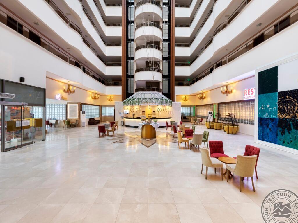 Площадь отеля 13100 м2. Состоит из 7-этажного здания. Всего 394 номера.