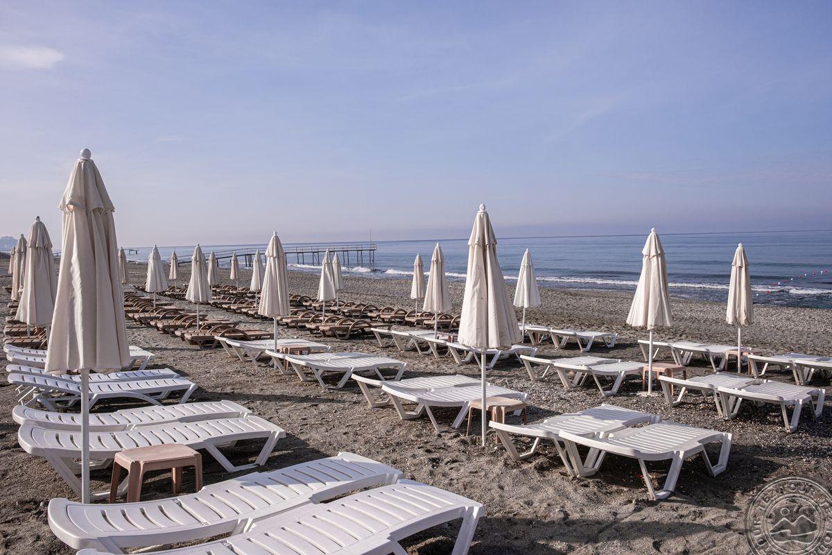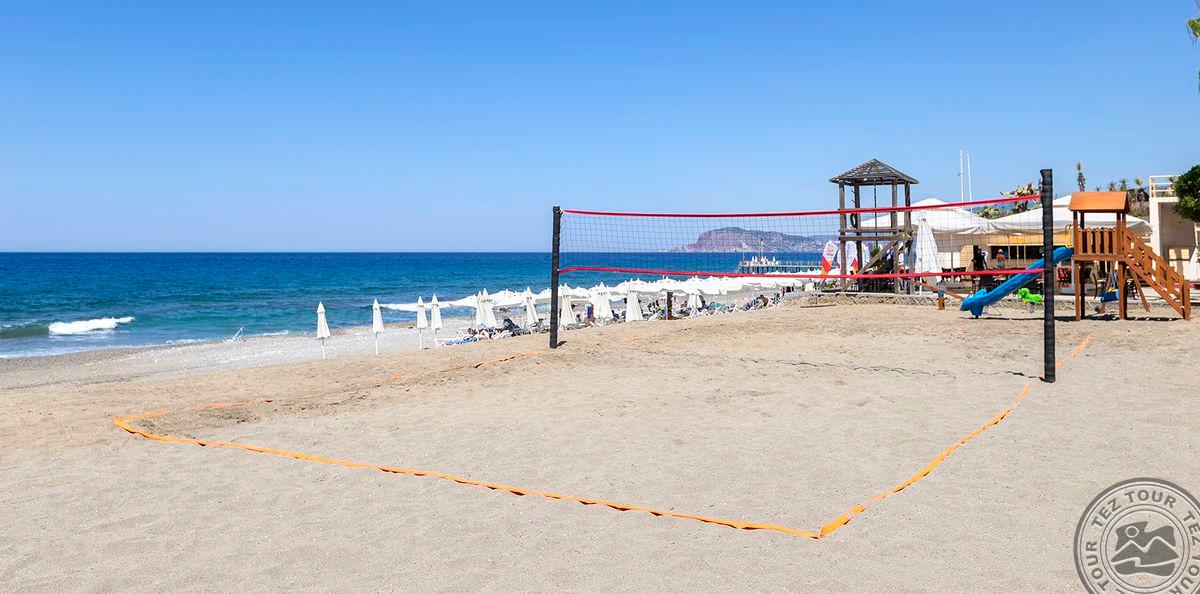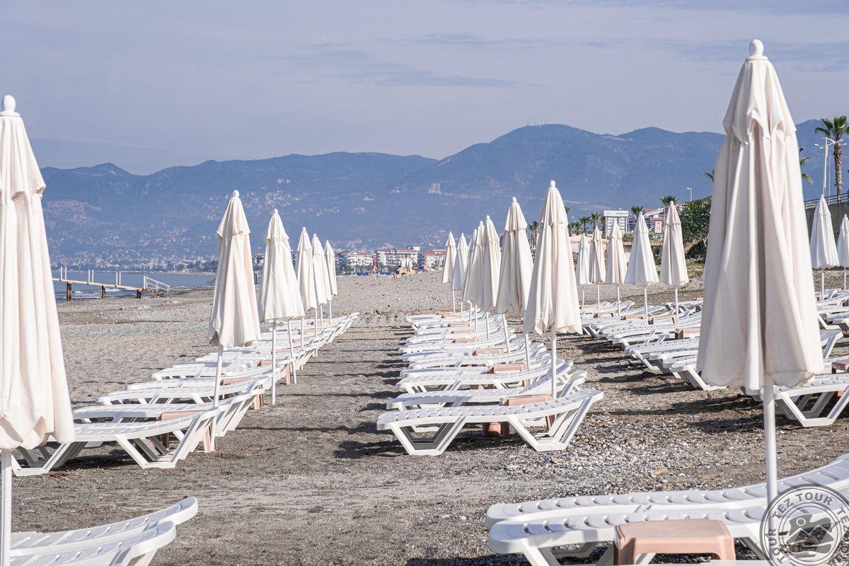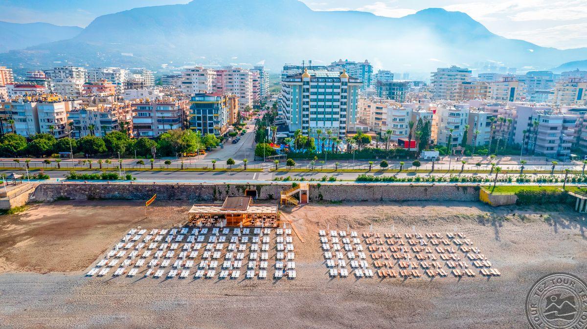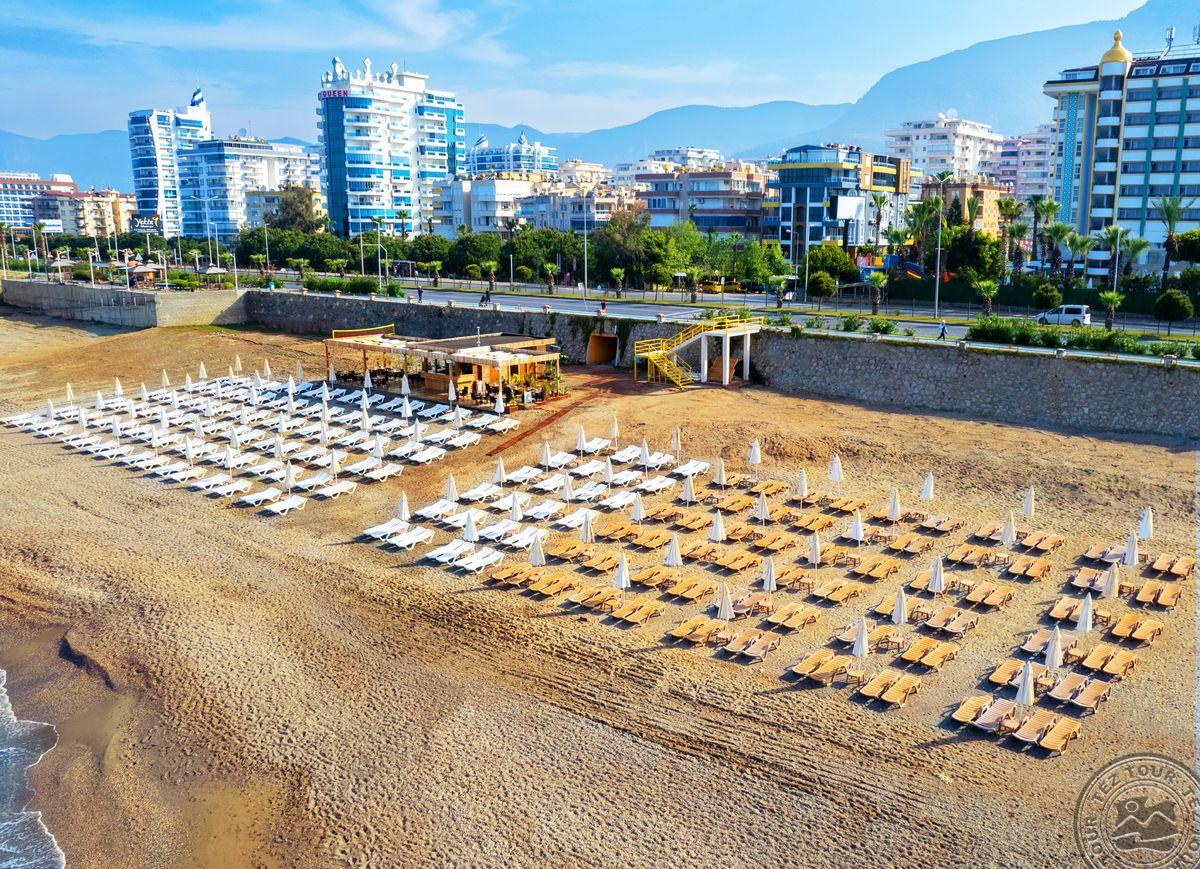 в 135 км от аэропорта г. Анталья, в 140 км от центра г. Анталья, в 12 км от Алании, в 50 м от пляжа (через подземный переход).