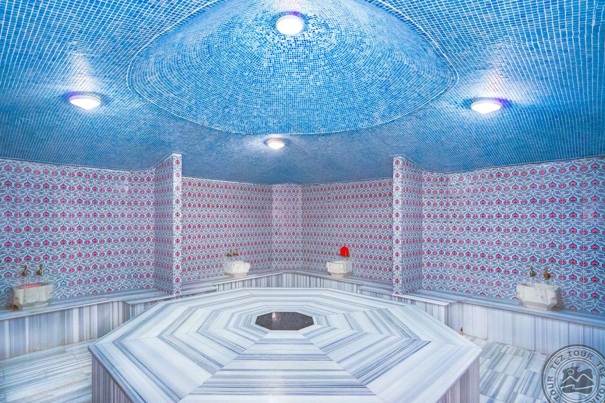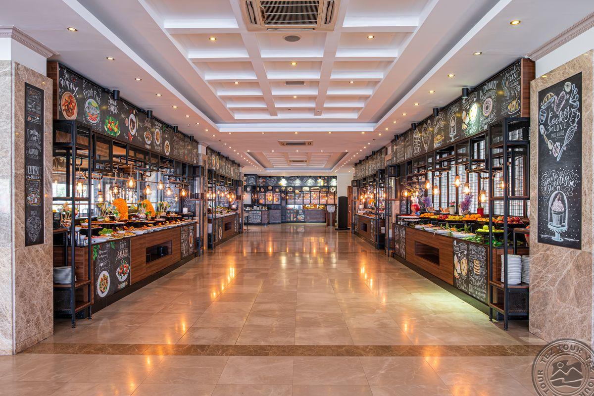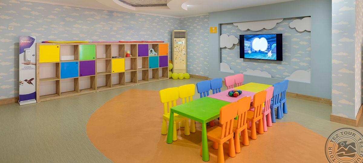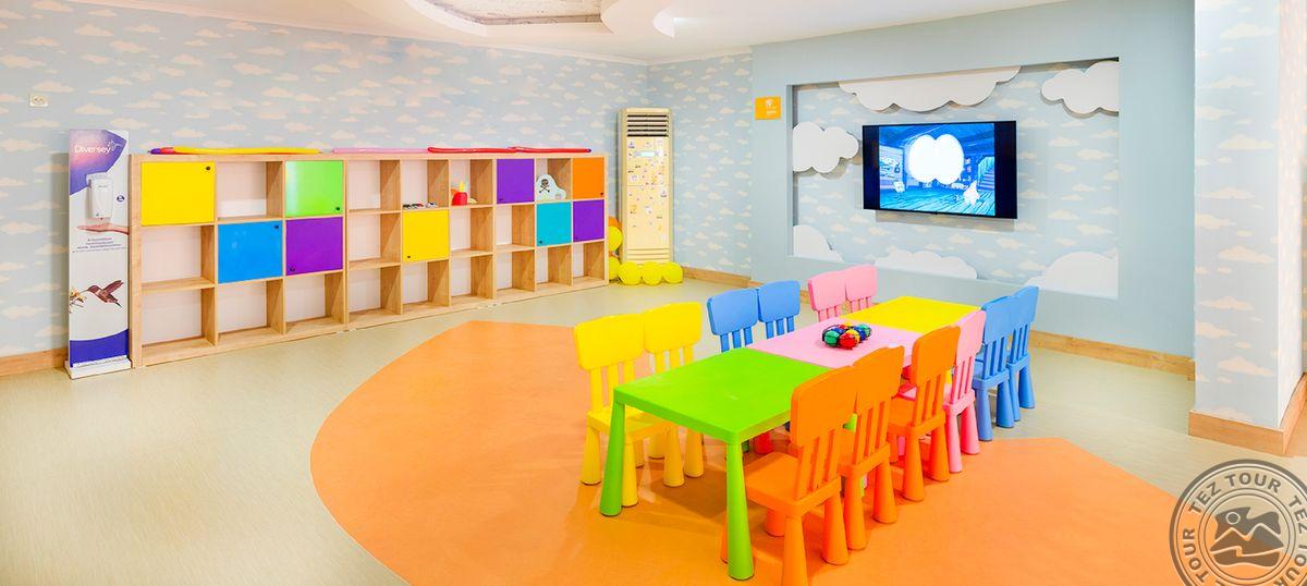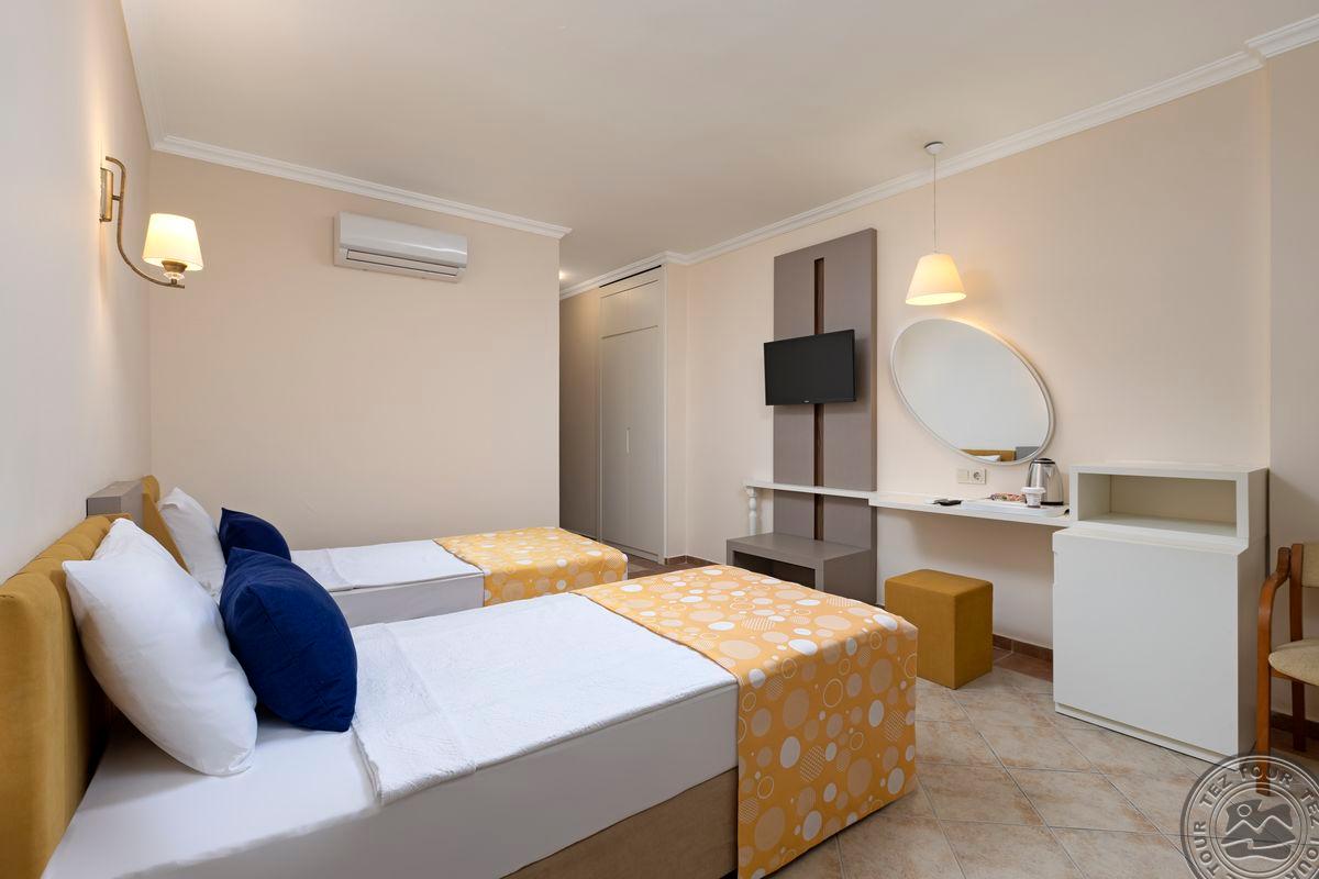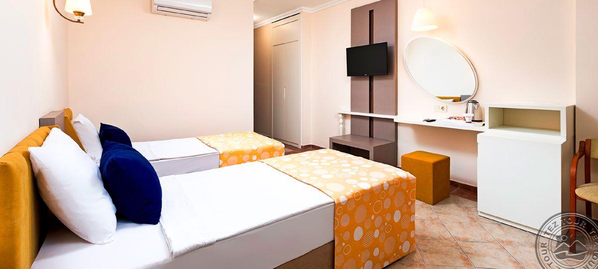 в 135 км от аэропорта г. Анталья, в 140 км от центра г. Анталья, в 12 км от Алании, в 50 м от пляжа (через подземный переход).