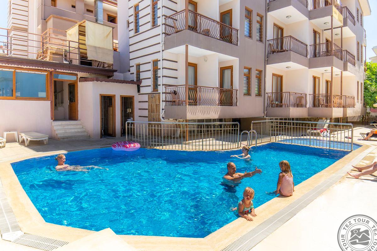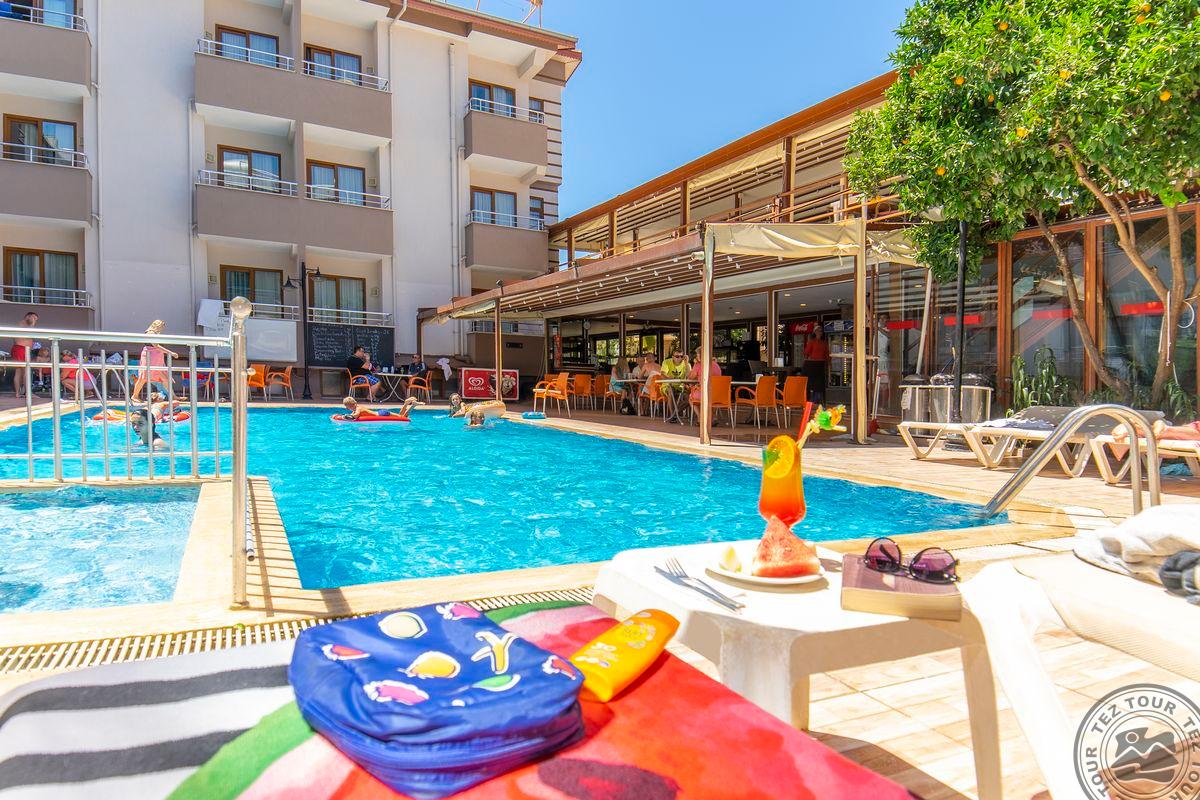 в центре Сиде, в 1 км от античного города Сиде, в шаговой доступности от магазинов, в 700 м от ближайшего пляжа. На главной дороге (примерно в 200 м от отеля) находятся остановки общественного транспорта (долмуши) и такси. Рынок работает каждую субботу на расстоянии около 200 м от отеля.