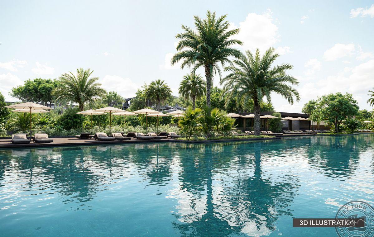 Lagoon Swim Up 2+1 (гостиная, 2 спальни, двуспальная и 2 односпальные кровати,2 ванные комнаты, терраса с доступом в бассейн, шезлонги, макс. 2+1 чел., 133 м2 включая террасу).