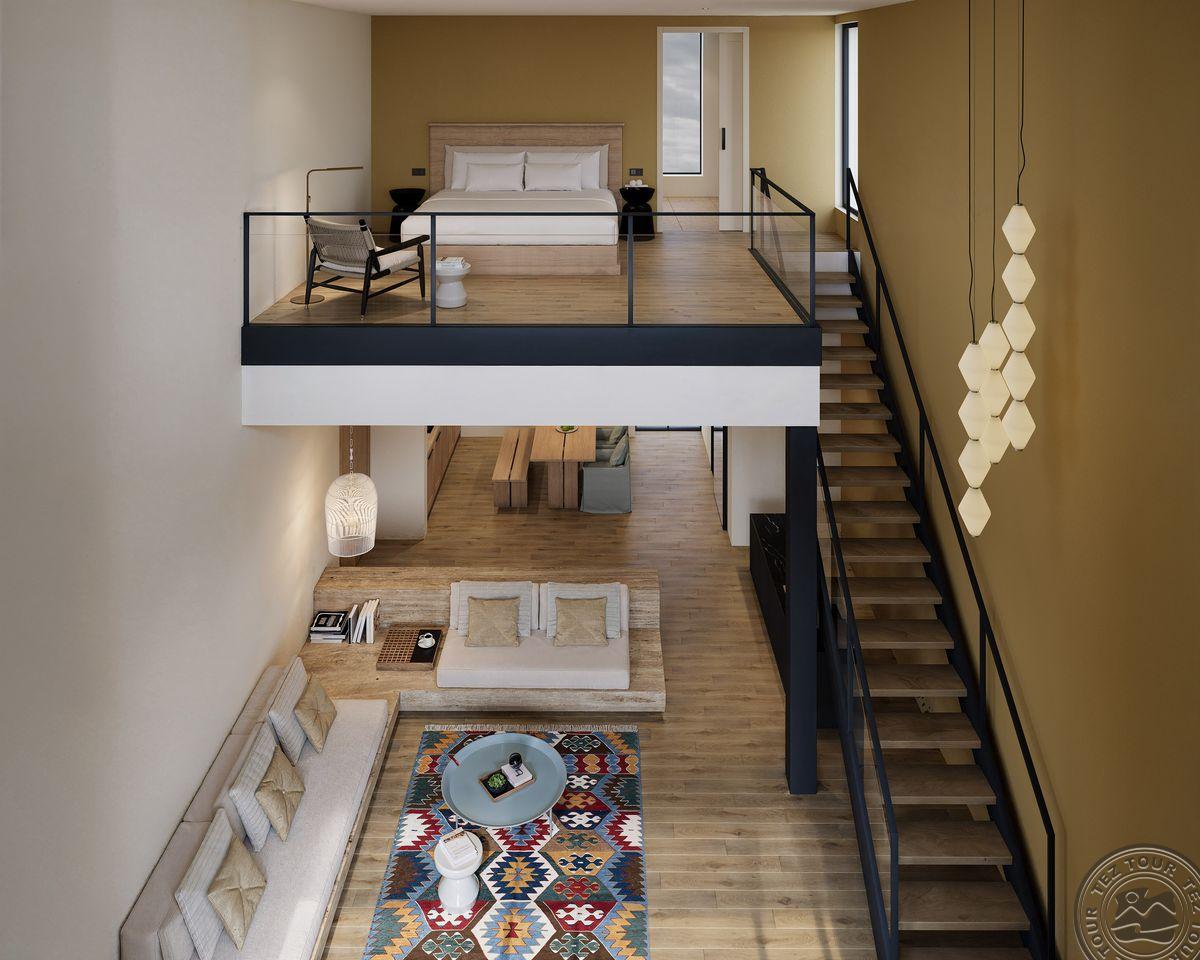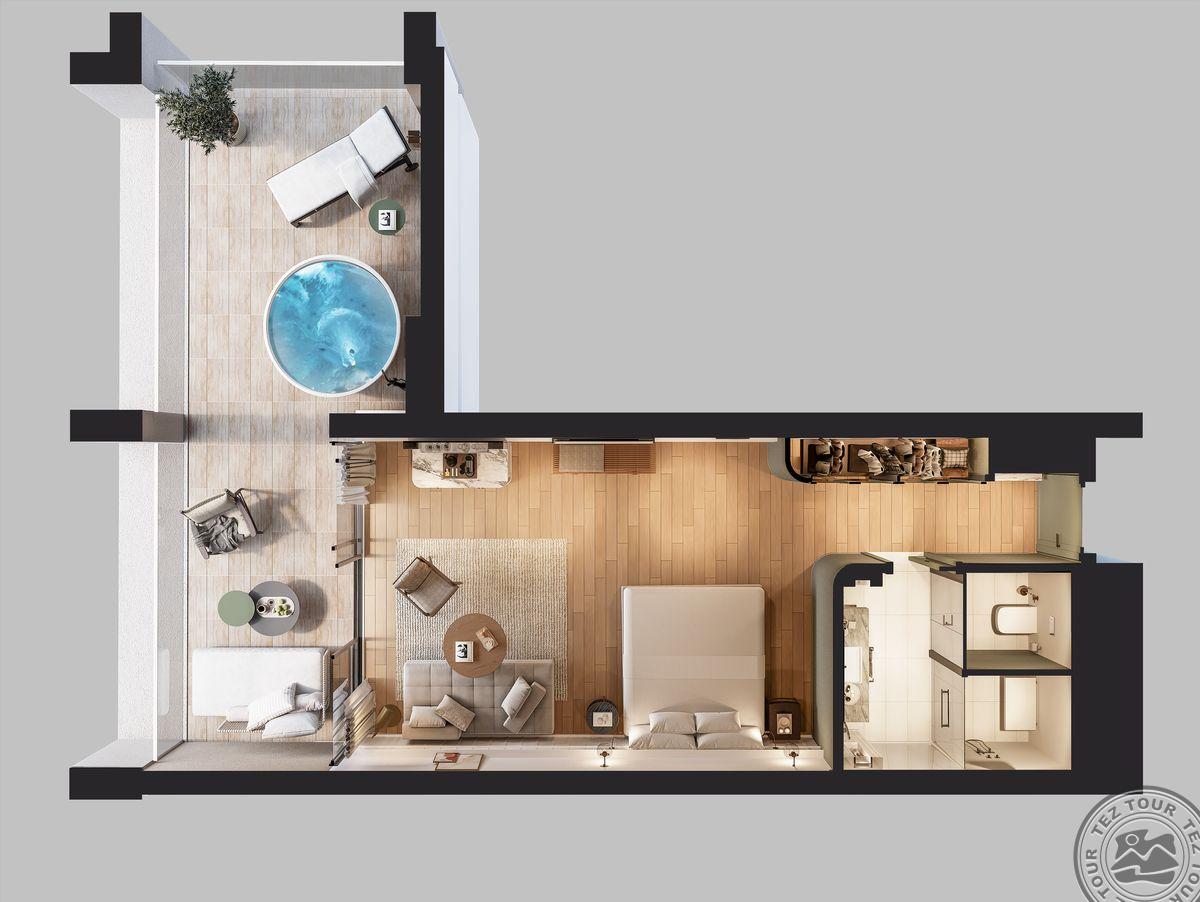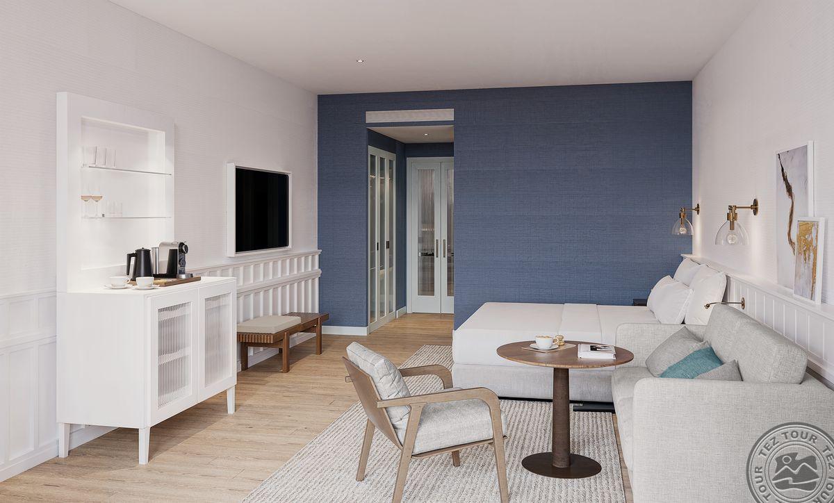 2 Junior Suite (гостиная, спальня, двуспальная или 2 односпальные кровати, макс. 4 чел., 107 м2);