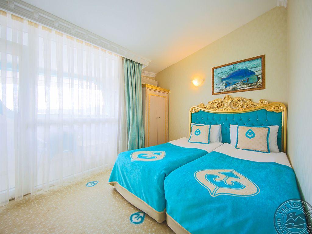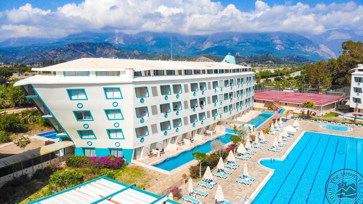 в 56 км от аэропорта г. Анталья, в 7 км от г. Кемер, в поселке Кириш, на берегу моря (проход по подземному переходу).