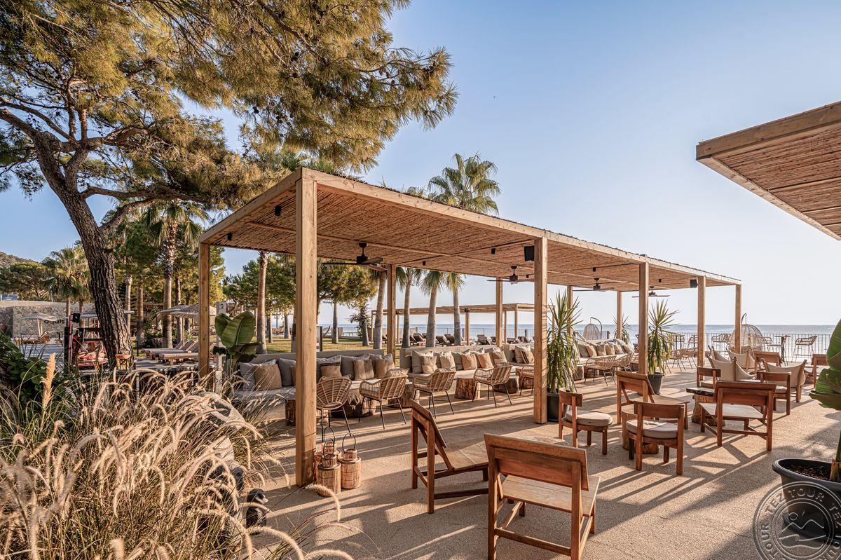 Очень зеленый небольшой отель с широким пляжем. Хорошее питание и сервис. Вход в море – крупная галька, но есть пирс, с которого можно войти в море.