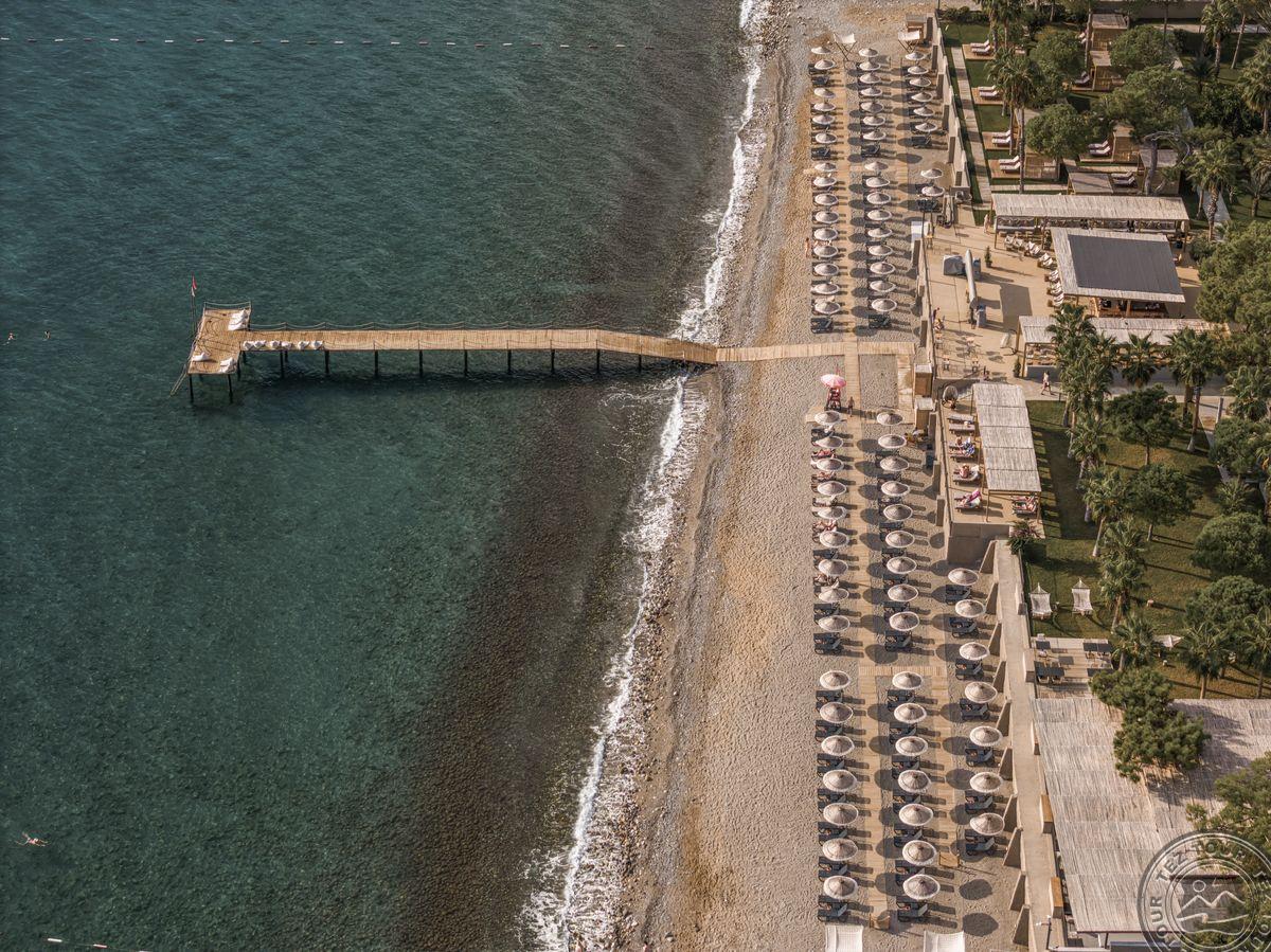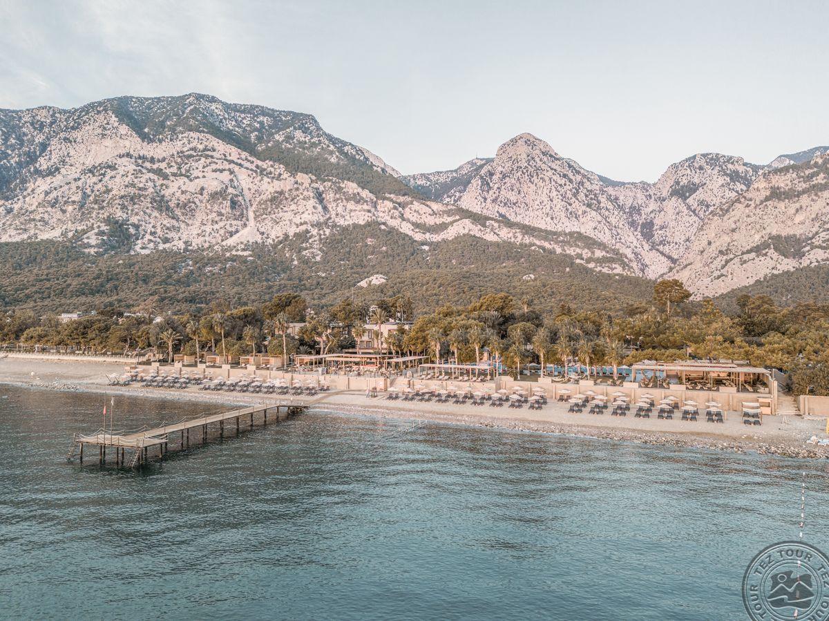 в 40 км от аэропорта г. Анталья, в 29 км от г. Анталья, в 18 км от г. Кемер, в 100 м от центра поселка Бельдиби, на берегу моря.