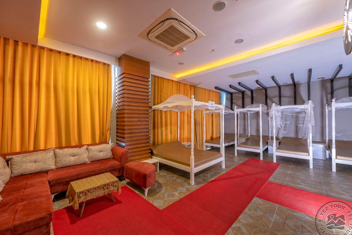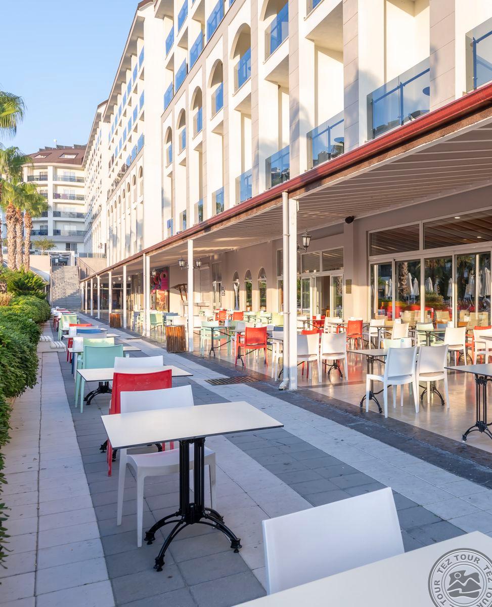 в 65 км от аэропорта г. Анталья, в 70 км от г. Анталья, в 7 км от Сиде, в 4 км от Манавгата, в 300 м от пляжа.