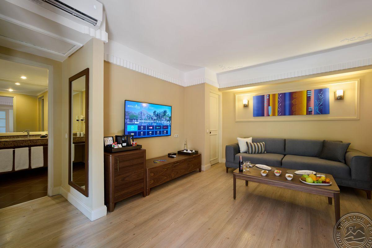 24 двухкомнатных Diwa Royal Junior Suite (с видом на сад, 1 гостиная с диваном с функцией односпальной кровати, 1 спальня, 1 ванная комната, 1 терраса, центральный кондиционер, макс. 3+1 чел., 45-51 м2);