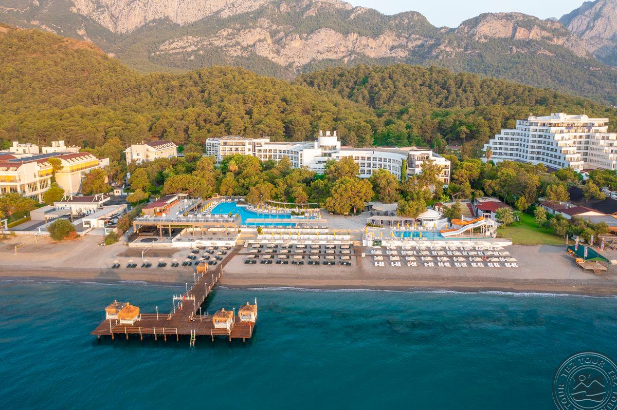 в 46 км от аэропорта г. Анталья, в 6 км от г. Кемер, в поселке Гёйнюк, на самом берегу моря.