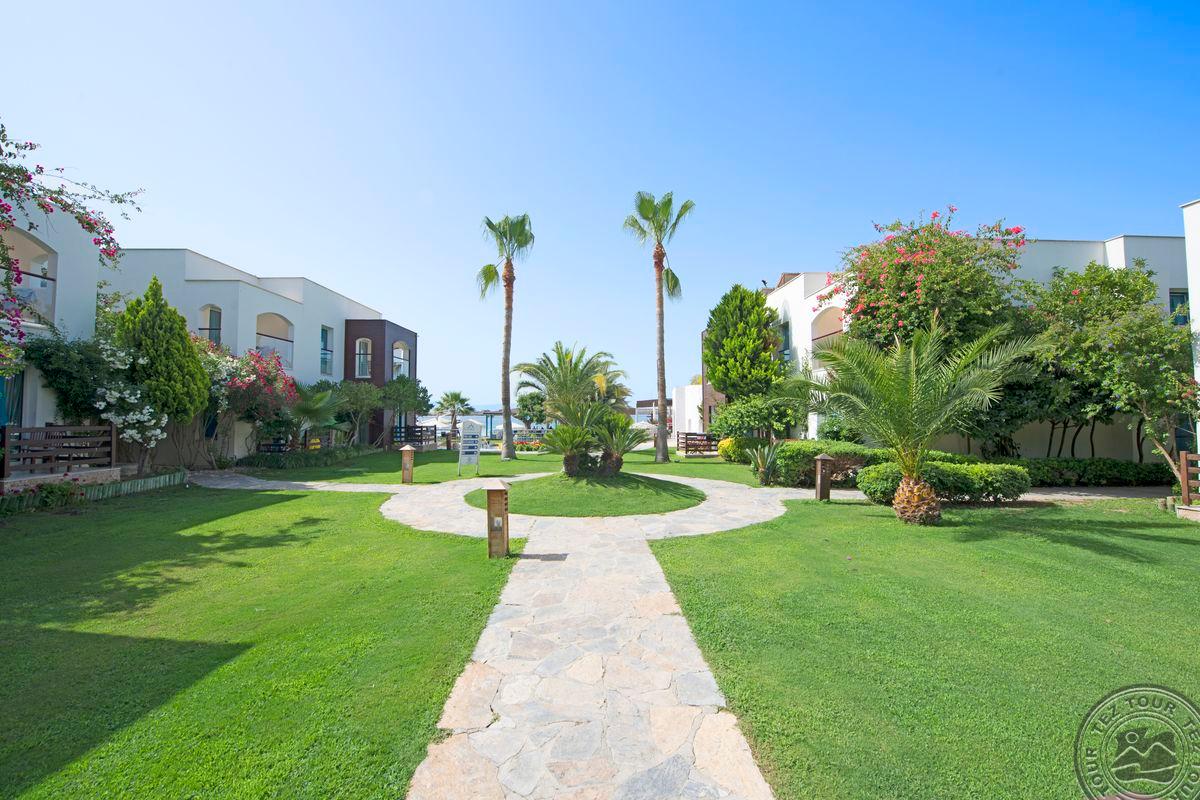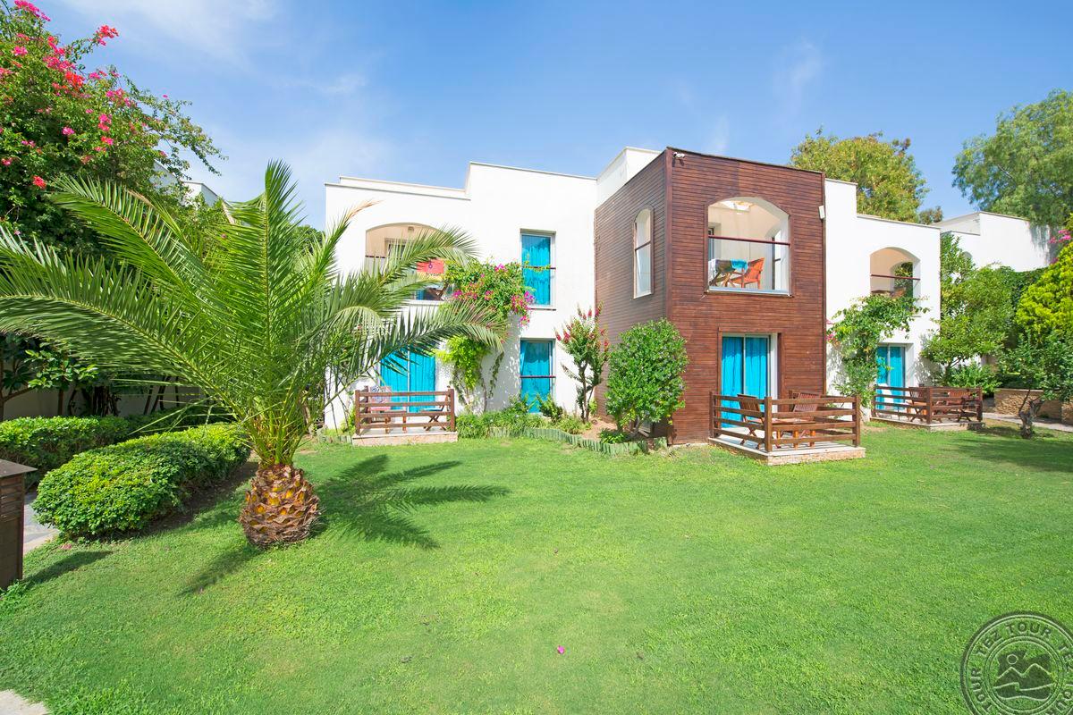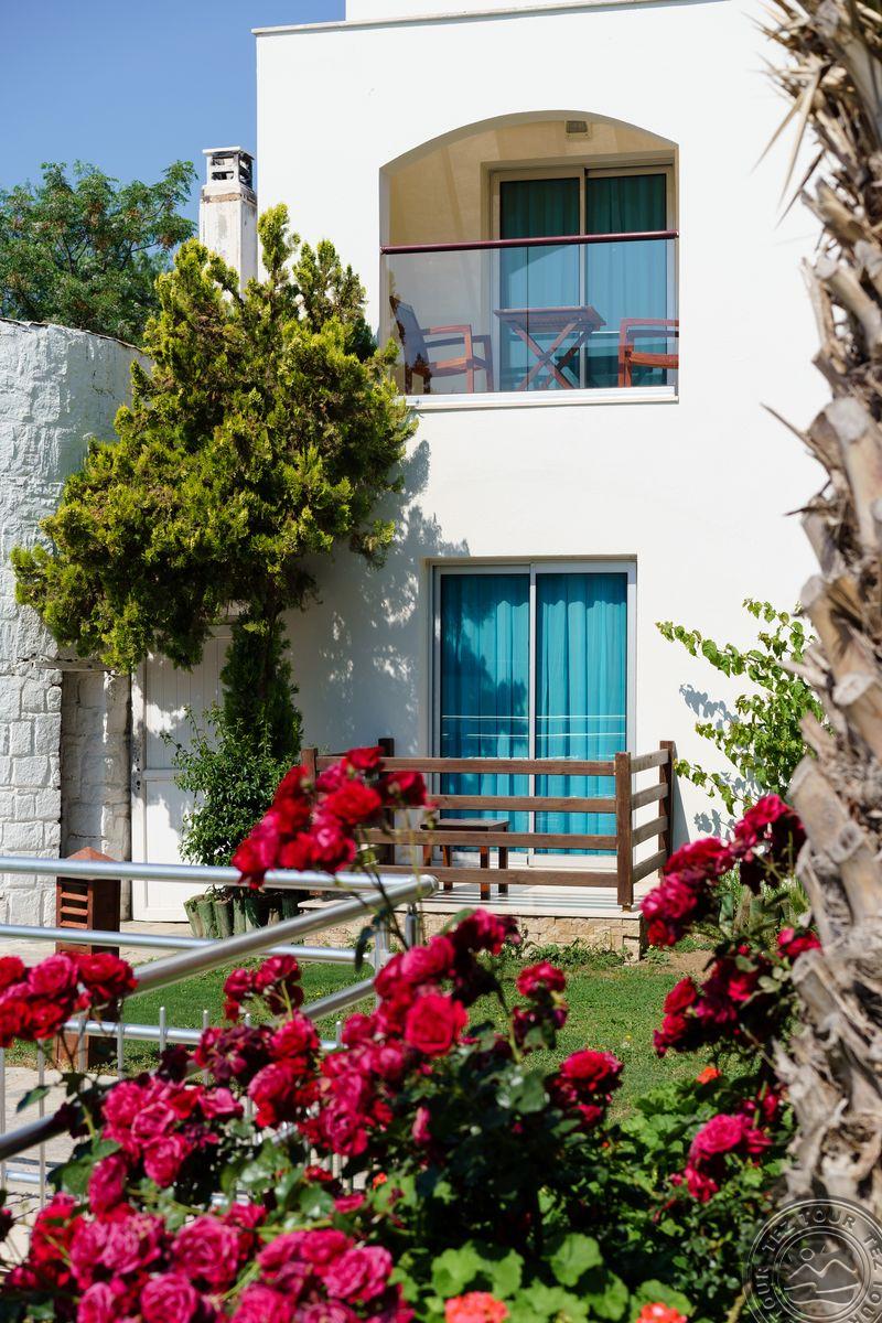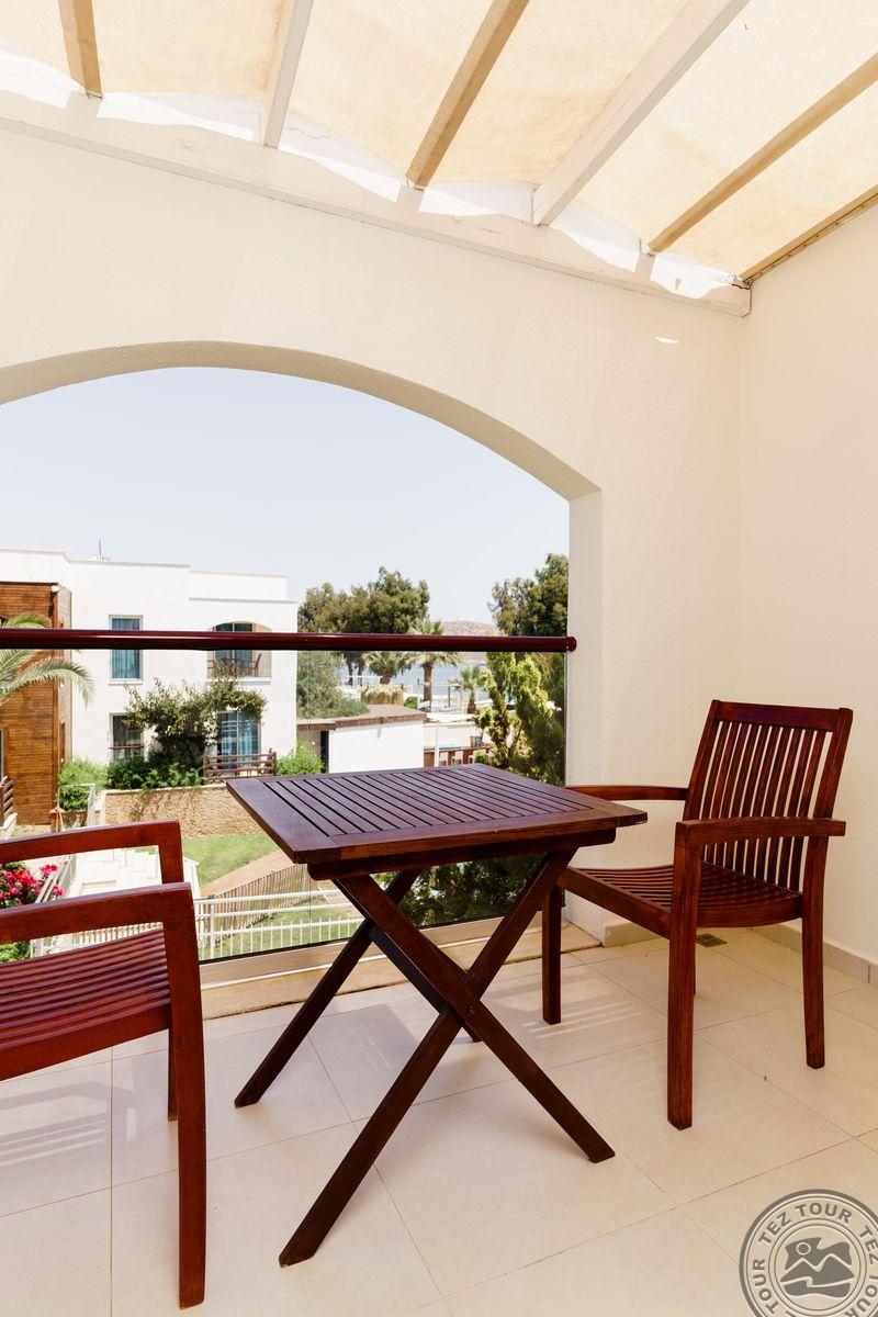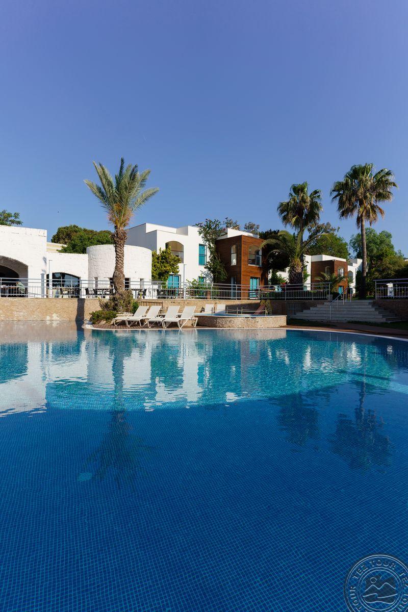 в местечке Гюмбет, в 3 км от Бодрума, в 35 км от аэропорта Бодрума, на берегу моря.