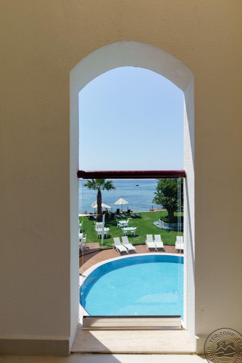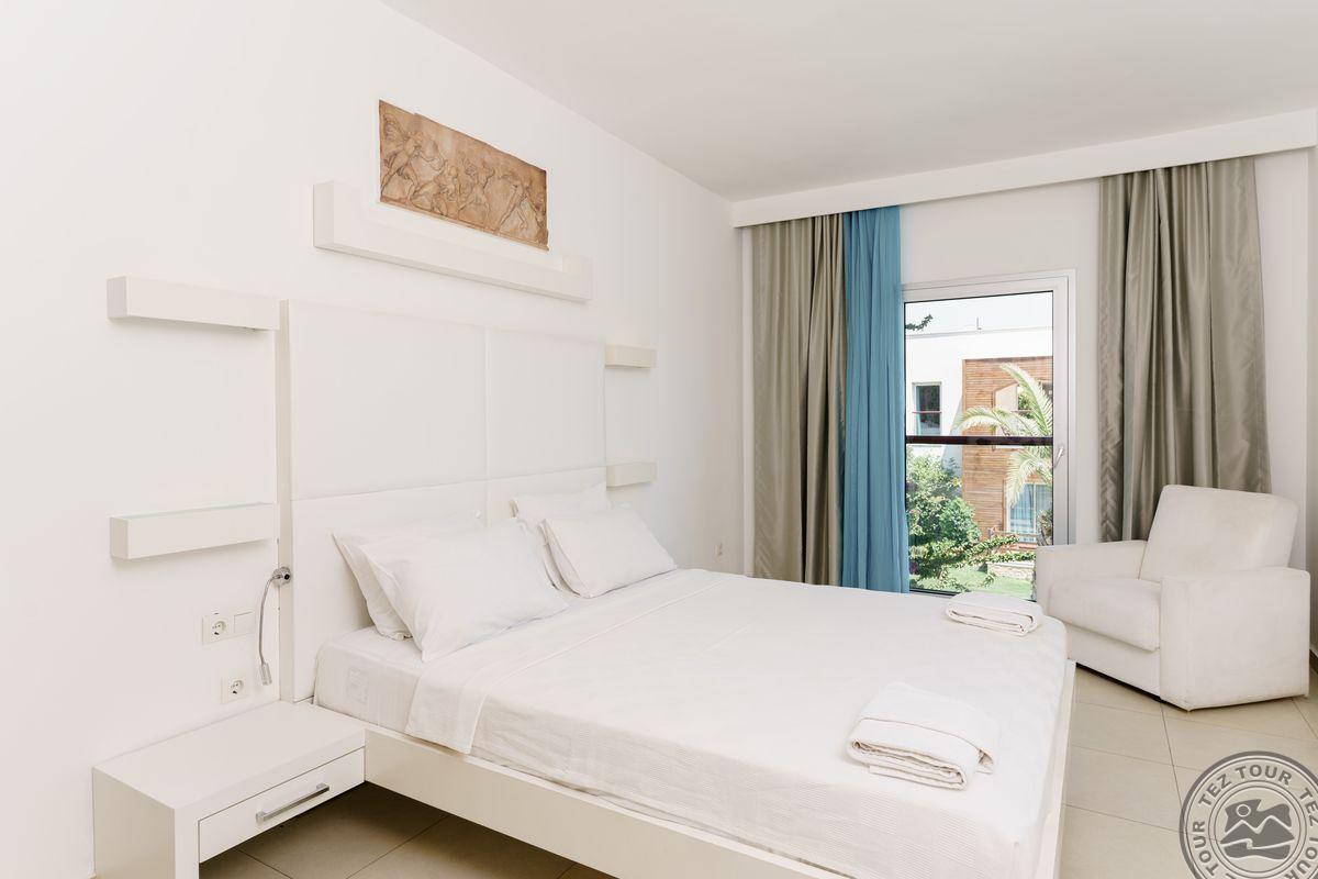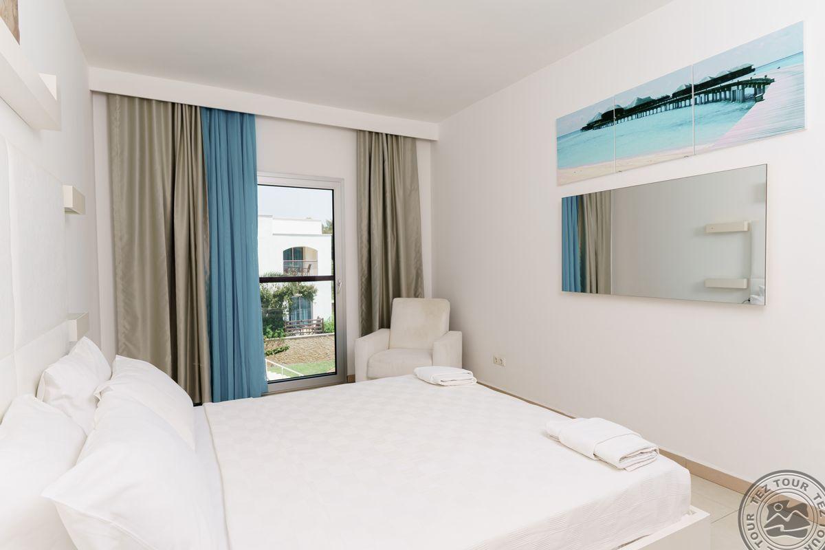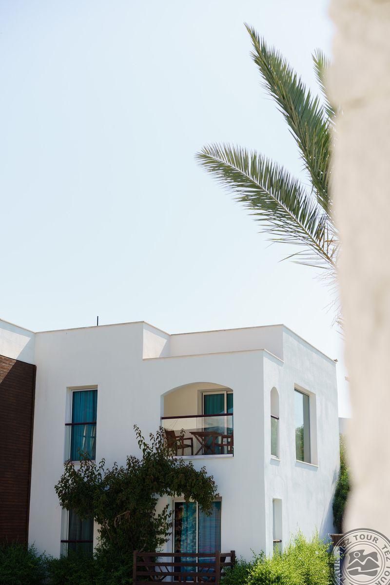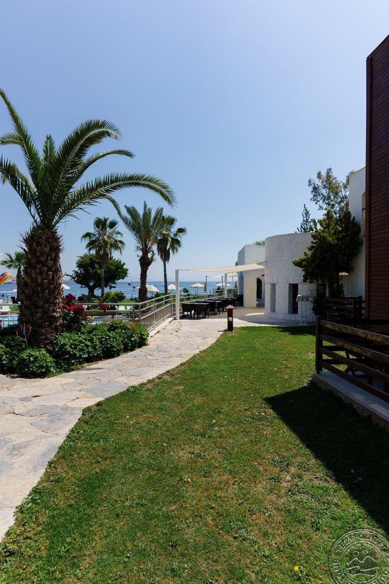 в местечке Гюмбет, в 3 км от Бодрума, в 35 км от аэропорта Бодрума, на берегу моря.