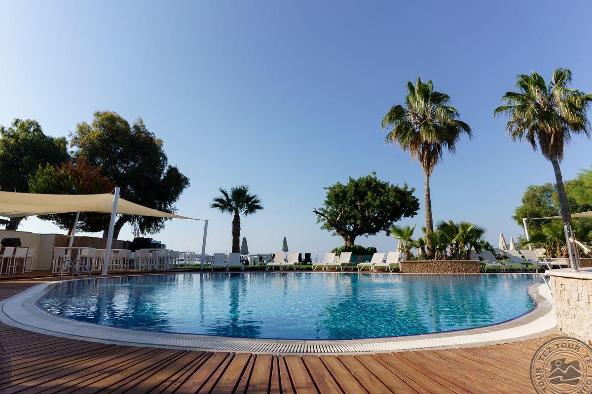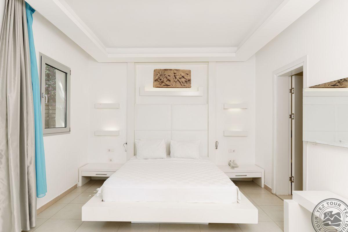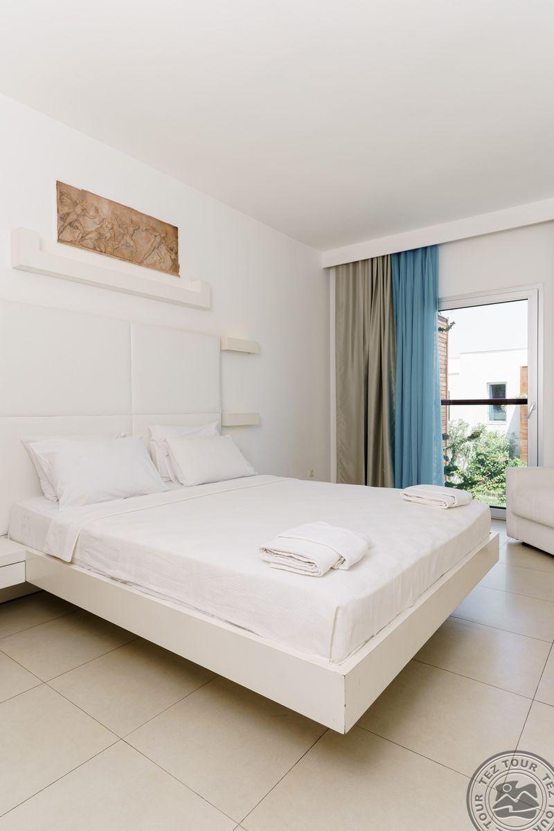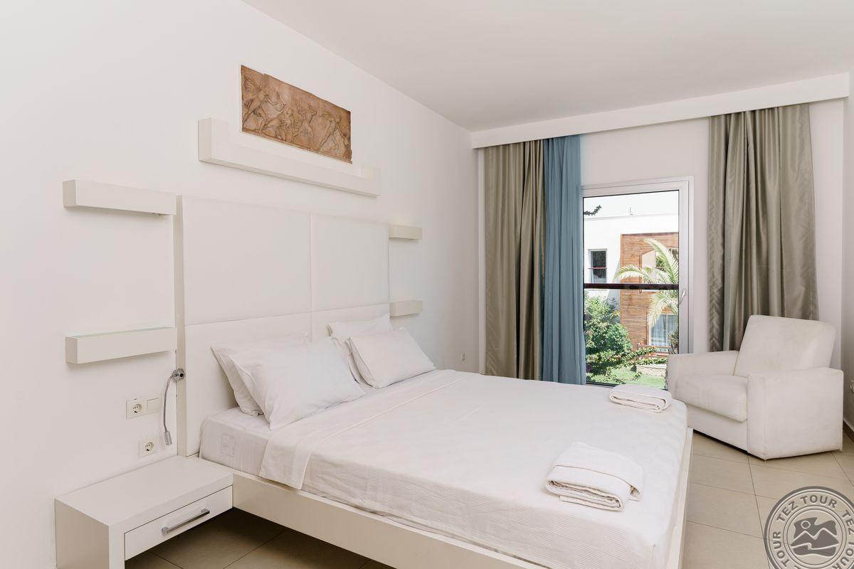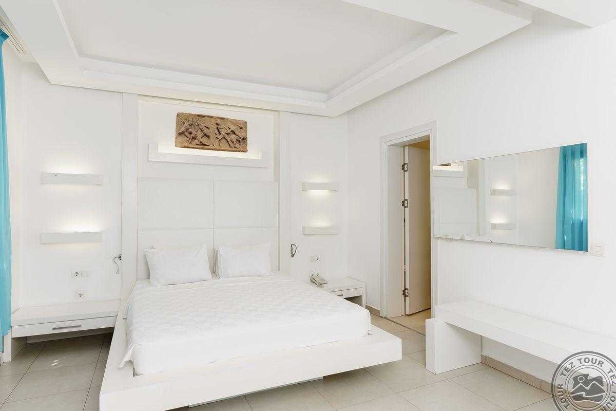 в местечке Гюмбет, в 3 км от Бодрума, в 35 км от аэропорта Бодрума, на берегу моря.