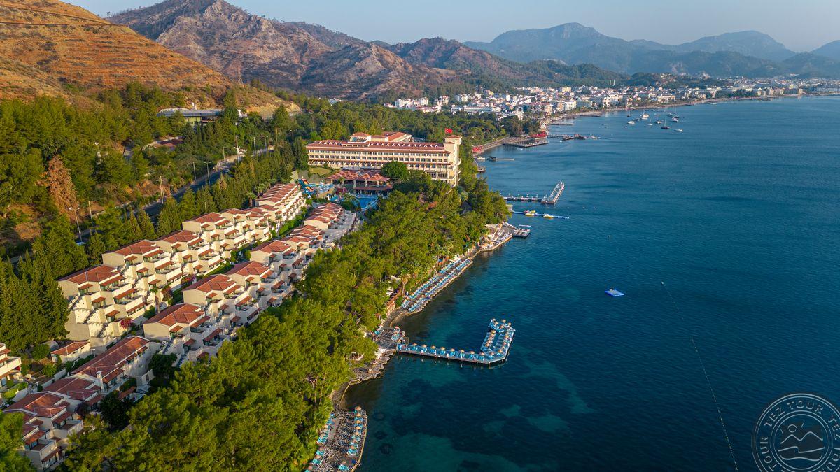 Отель построен на очаровательном побережье Эгейского моря. Отель расположен среди сосен на 650-метровом пляже, который тянется вдоль залива Мармарис. Пристани и террасы для загара расположены на пляже и вокруг него.
