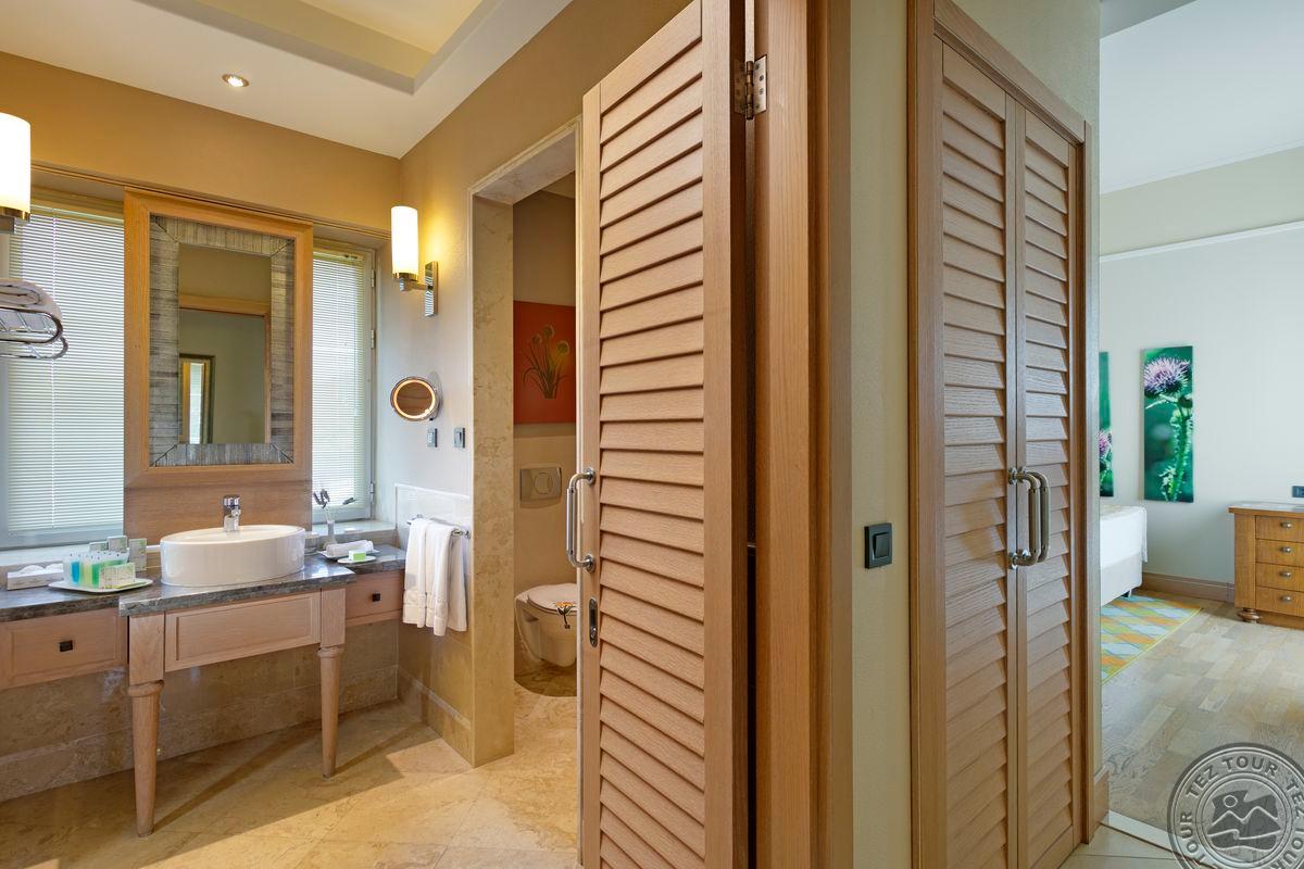 1 двухэтажная вилла Royal Villa (частный бассейн, на 1-ом этаже: холл, полностью оборудованная кухня, кладовая, спальня для дворецкого с отдельным входом со двора, ванная комната, туалет, гостиная со столовой зоной, большая меблированная терраса со столовой зоной и барбекю, гостевая спальня (2 односпальные кровати) и ванная комната с ванной, рабочий кабинет, терраса со столовой зоной для четырёх человек; на 2-ом этаже: большая спальня с двуспальной кроватью, мягкий уголок, гардеробная, ванная комната, джакузи, сауна, парная, большая терраса с шезлонгами. 1 спальня с двуспальной кроватью, местом для отдыха, гардеробной, большой ванной комнатой с туалетом, двойной раковиной, душевой, джакузи и террасой с шезлонгами. 2 спальни (обе с двуспальной кроватью, а также меблированными балконами и ванными комнатами с ванной и душем, макс. 11+2 чел., 537 м2)